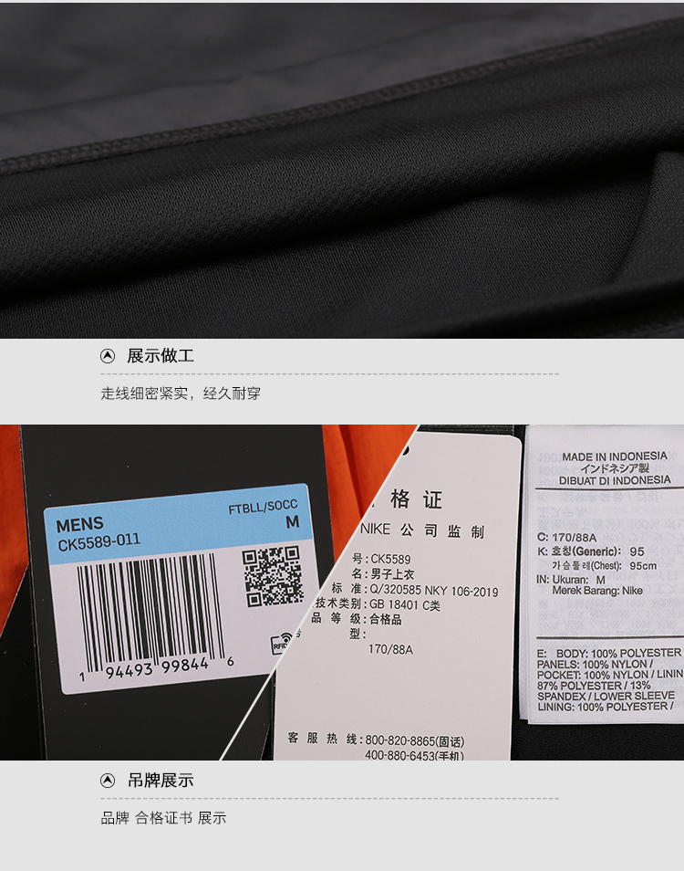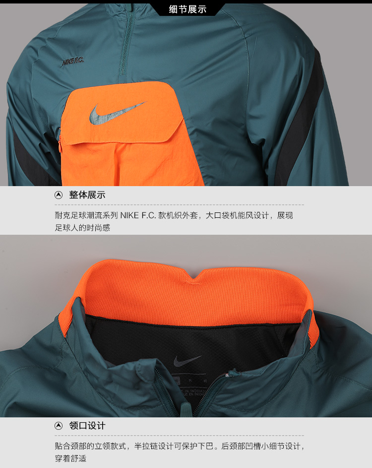 NIKE/耐克 F.C 运动潮流半拉链套头衫足球外套CK5589011