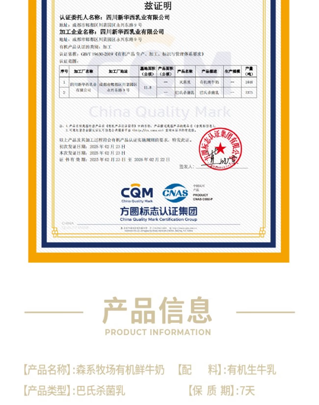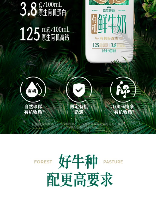 【买1赠1】新希望森系牧场有机鲜牛奶900ml/瓶