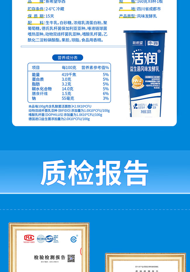 新希望 华西 活润 原味 益生菌·风味发酵乳 160g*8杯/组
