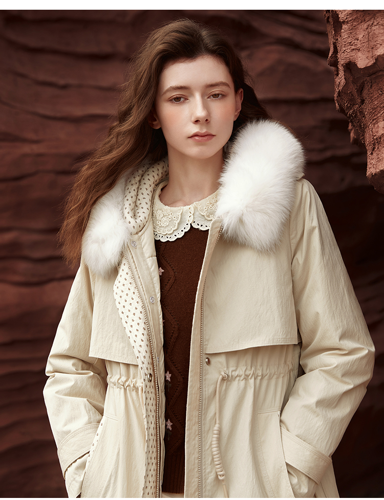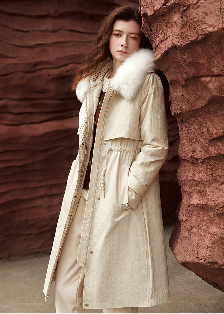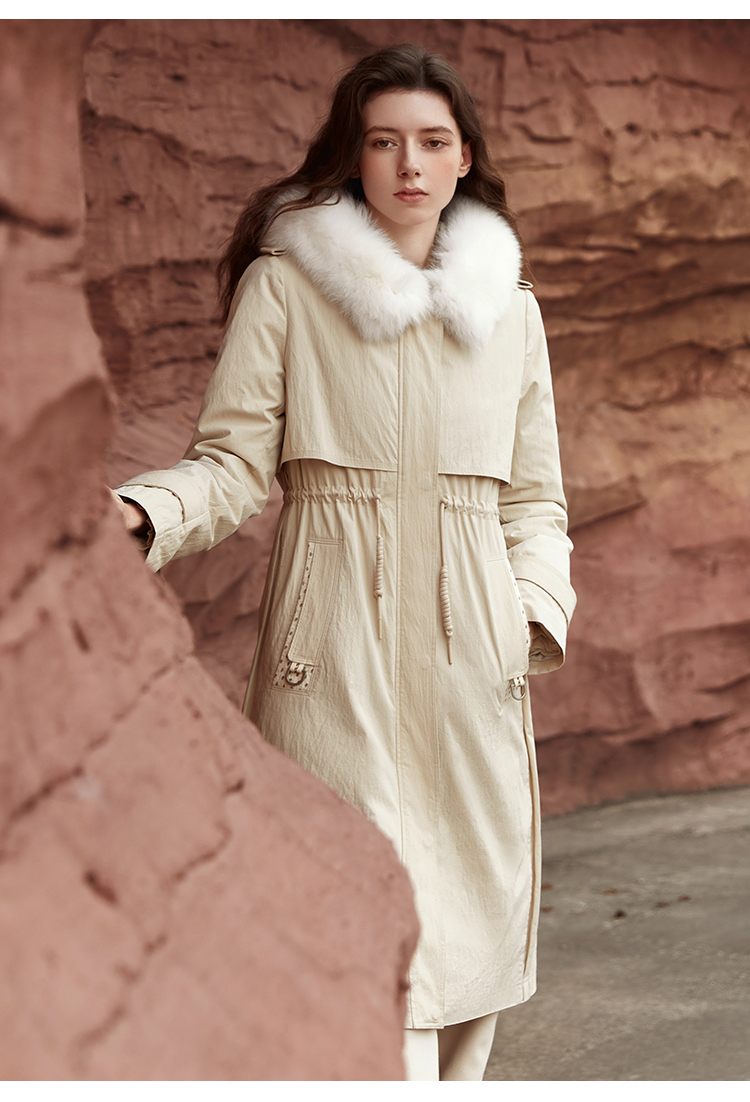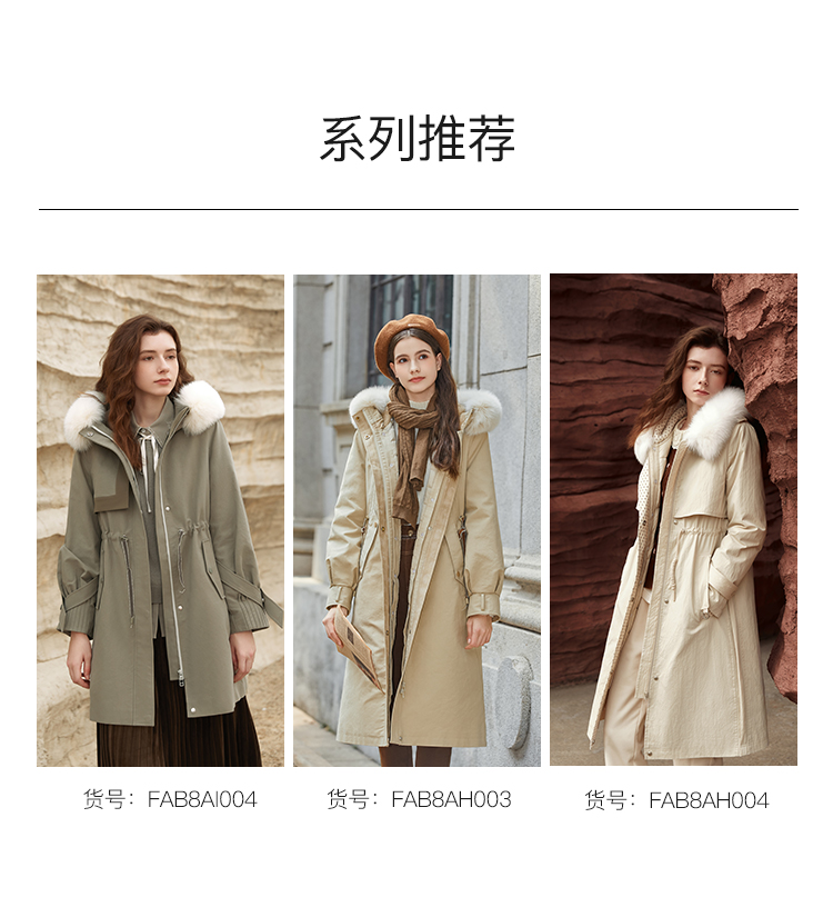 Famecoco范可儿连帽长款羽绒服可拆卸内胆FAB8AH004