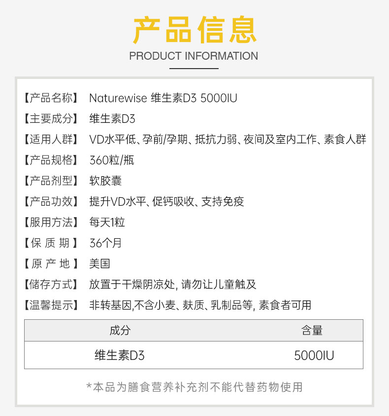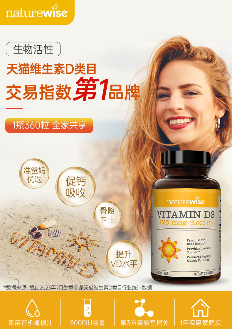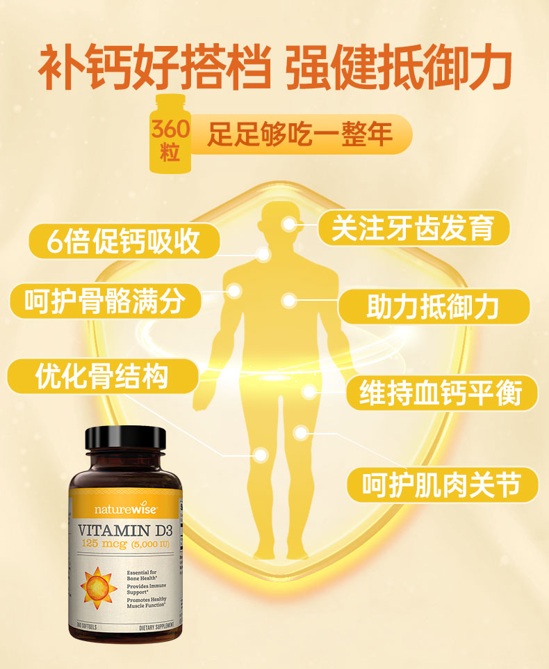 ³ 一百多吃一年【美国进口小金珠阳光瓶维生素D3】1000-5000IU 360粒/瓶吃一年 儿童成人都有 XN03-CRMM-XJJK】
