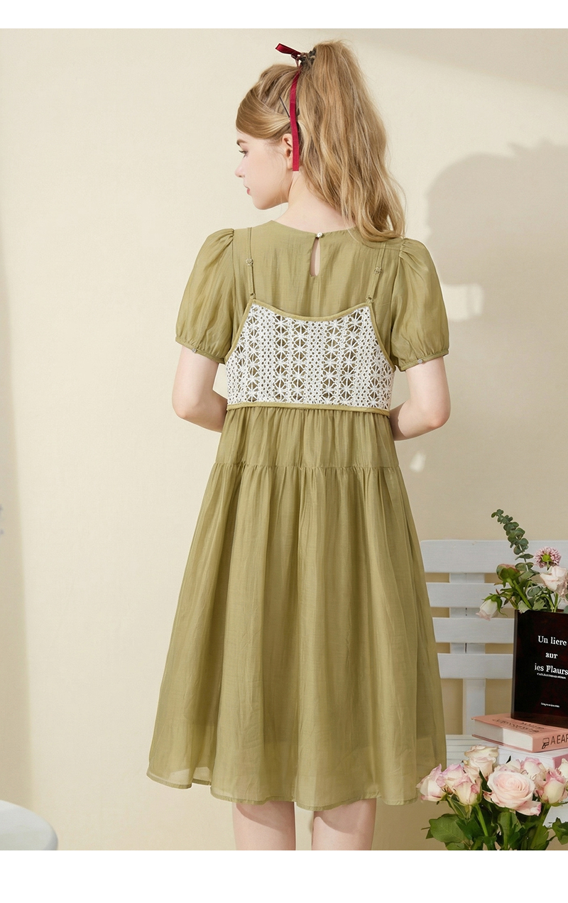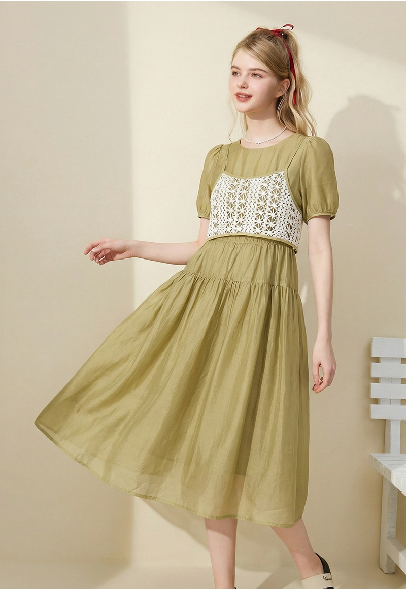 女装圆领短袖连衣裙+勾花小吊带Q2224323
