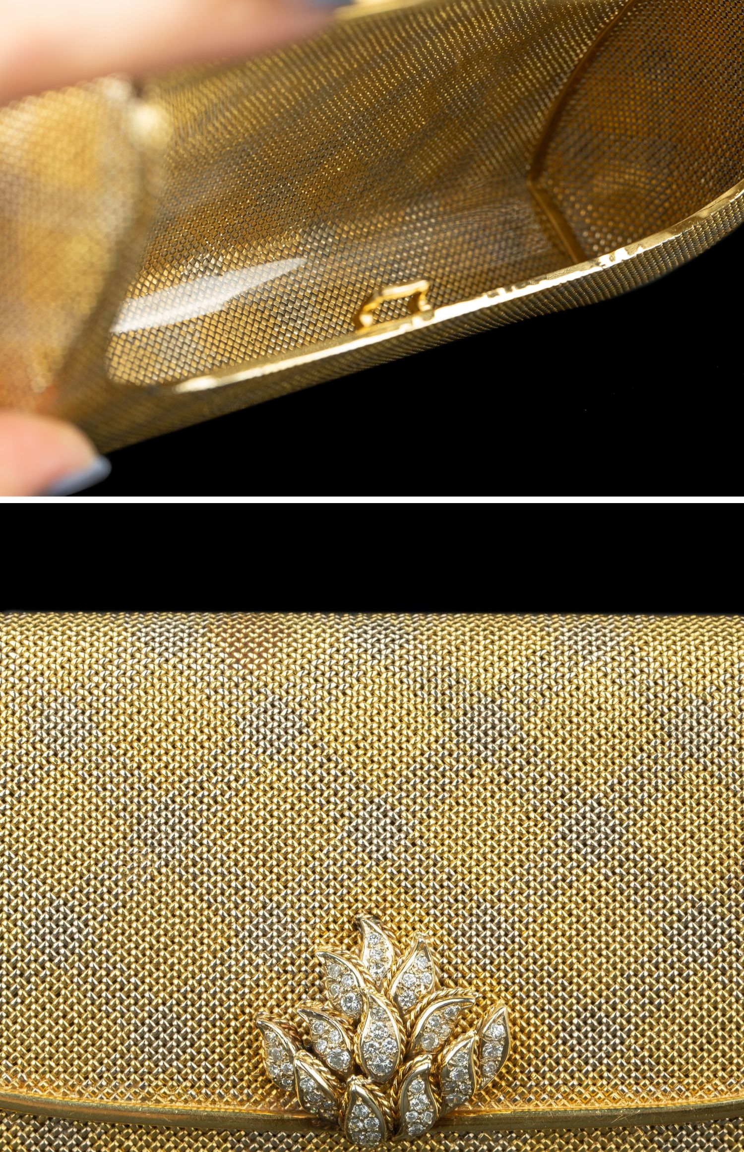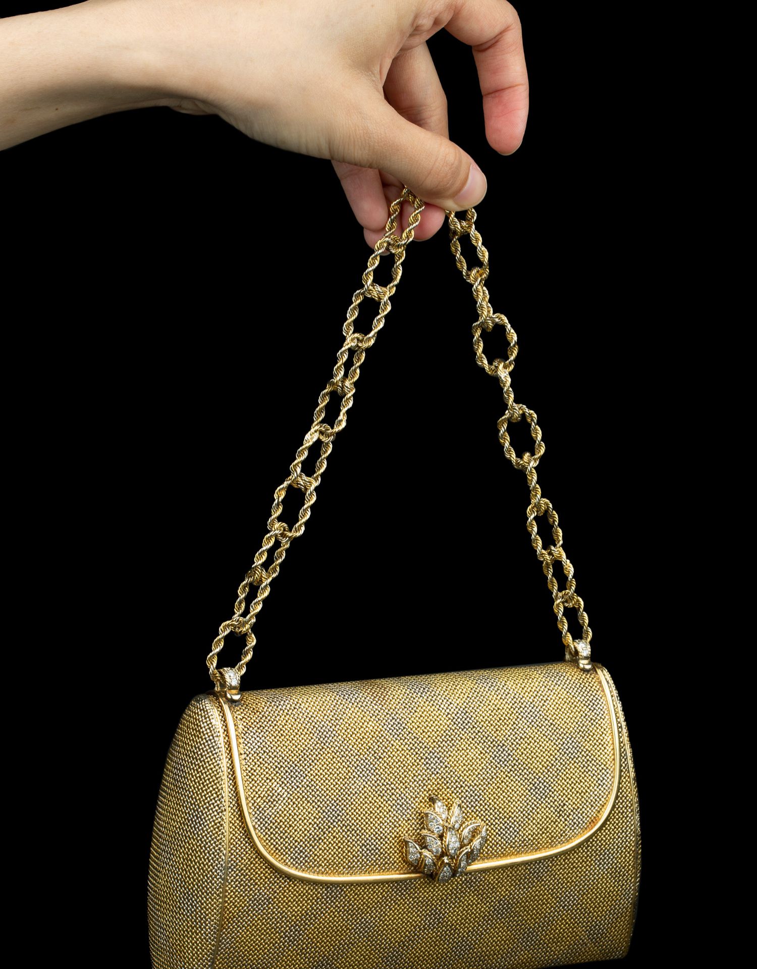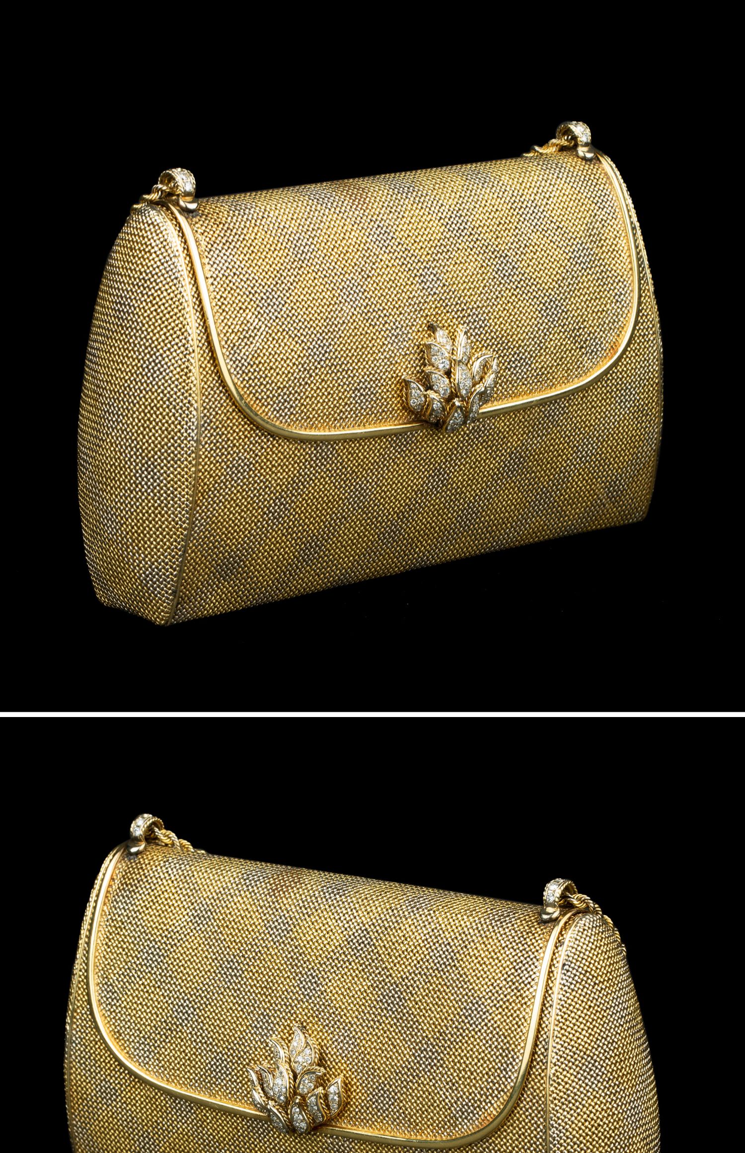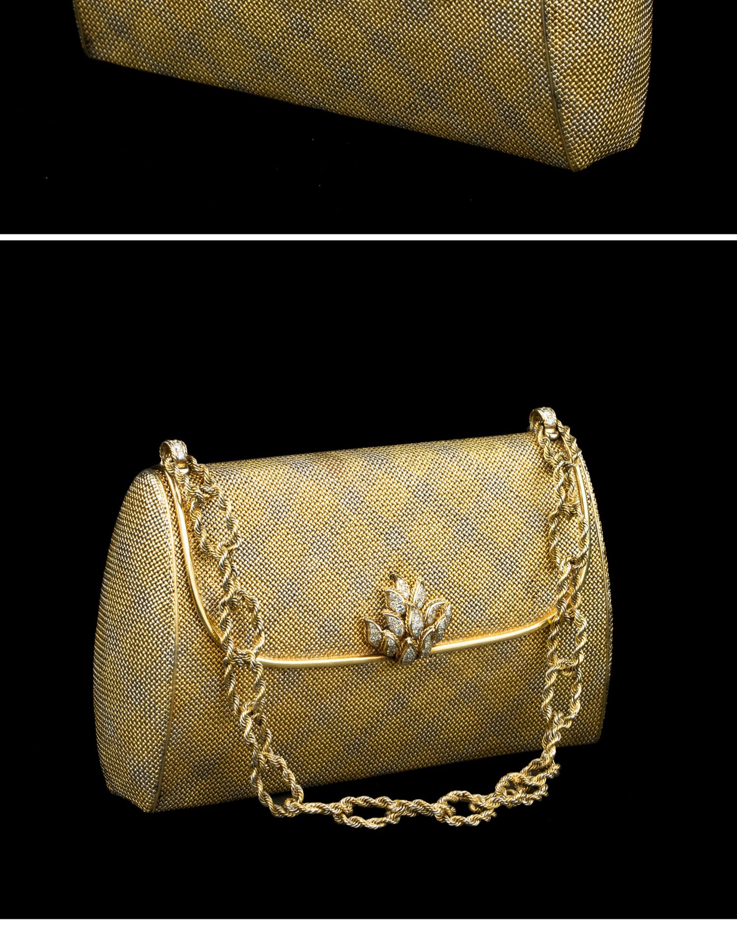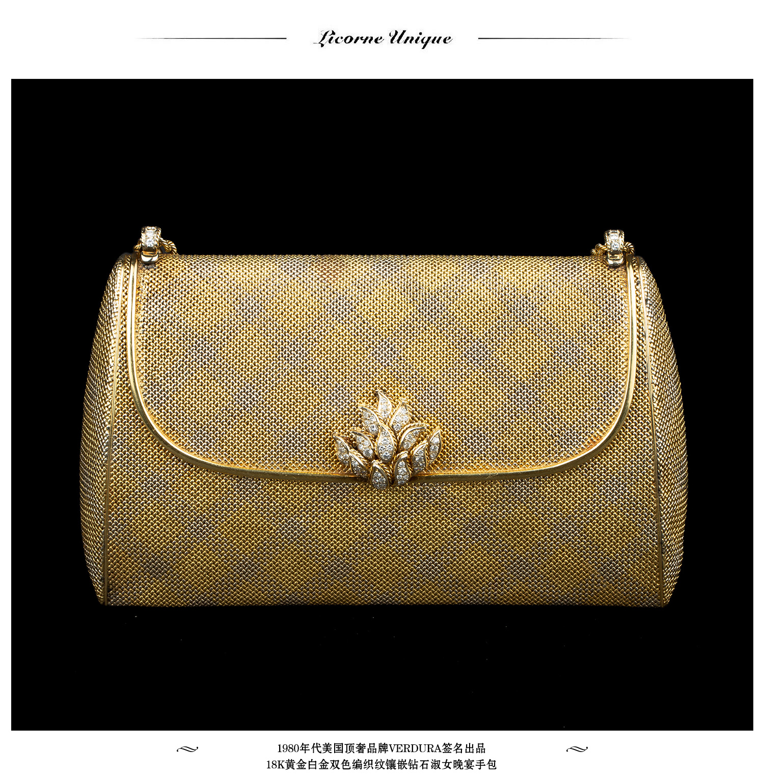 独角鹿西洋古董VERDURA18K黄金白金双色编织纹嵌钻石淑女晚宴手包