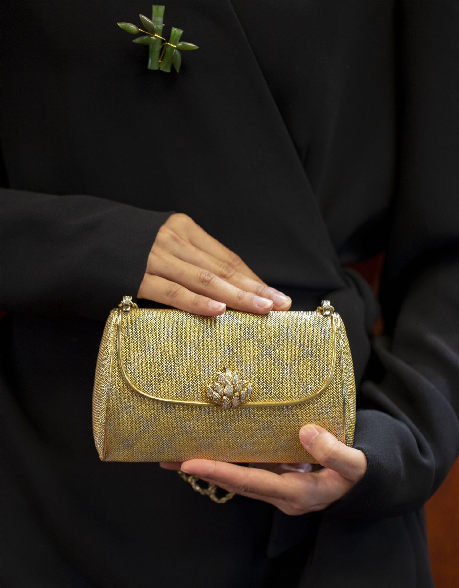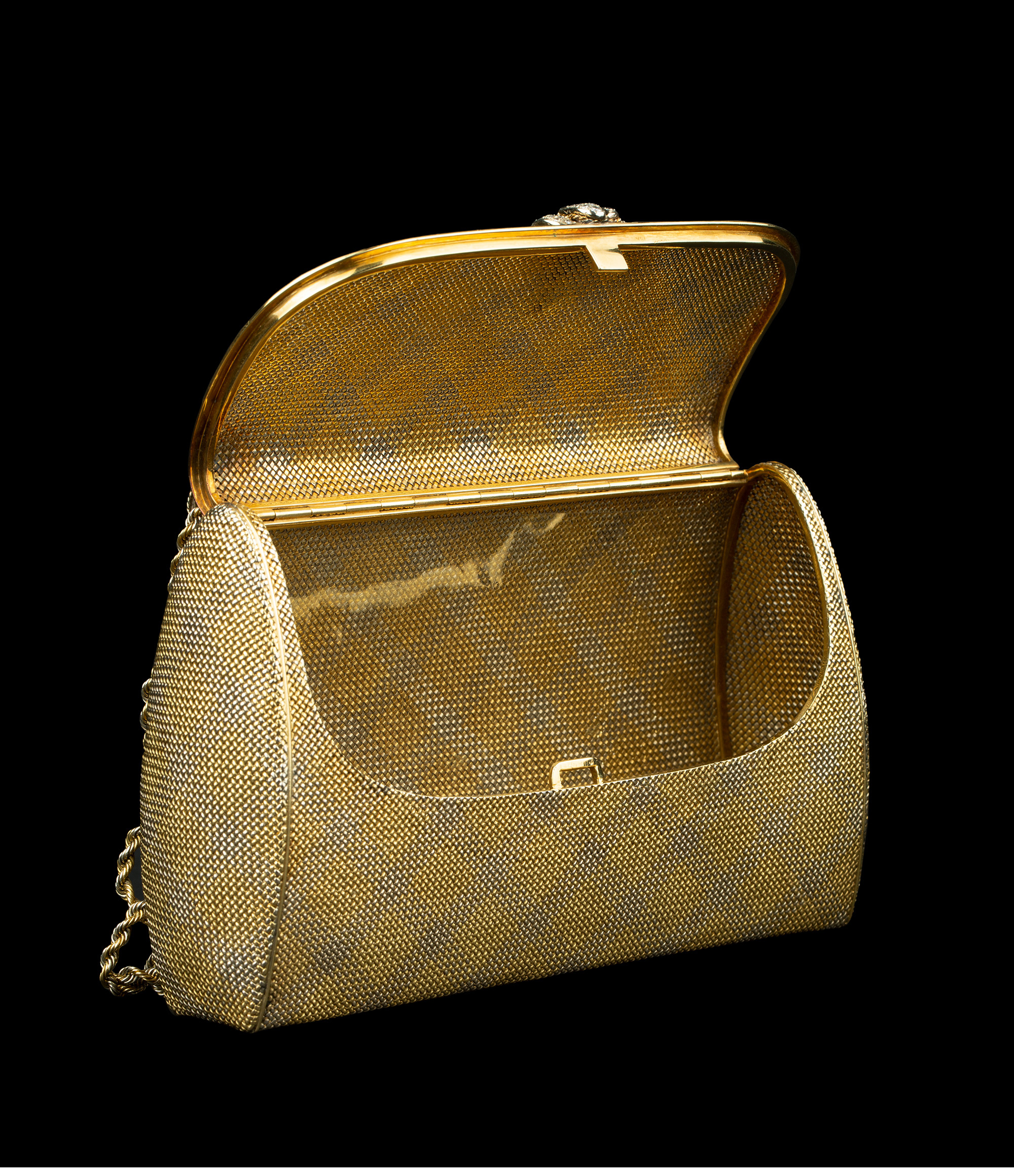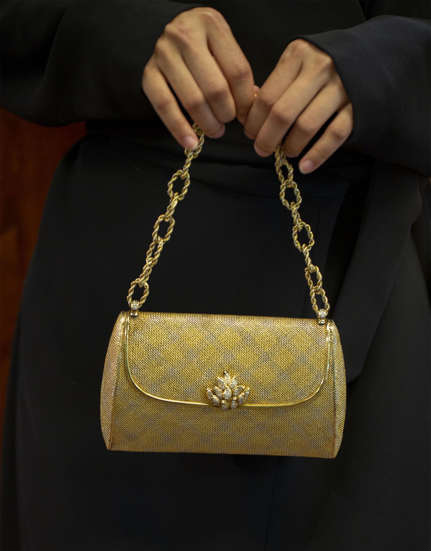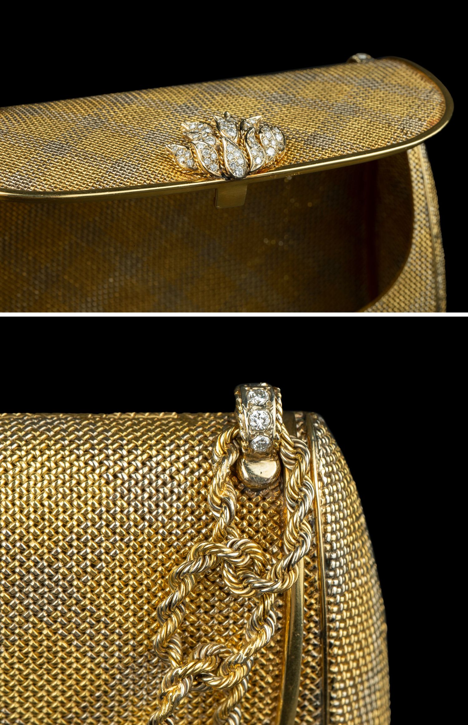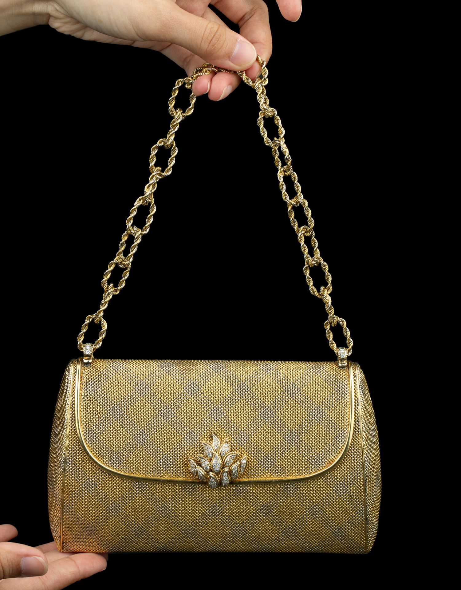 独角鹿西洋古董VERDURA18K黄金白金双色编织纹嵌钻石淑女晚宴手包