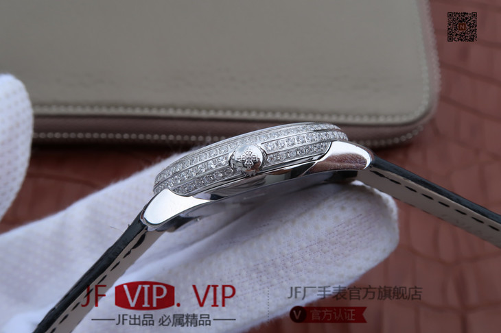 KG百达翡丽复杂功能系列4968女士手表。海鸥克隆组装215 PS LU手动机械机芯,镶嵌施华洛世奇钻。