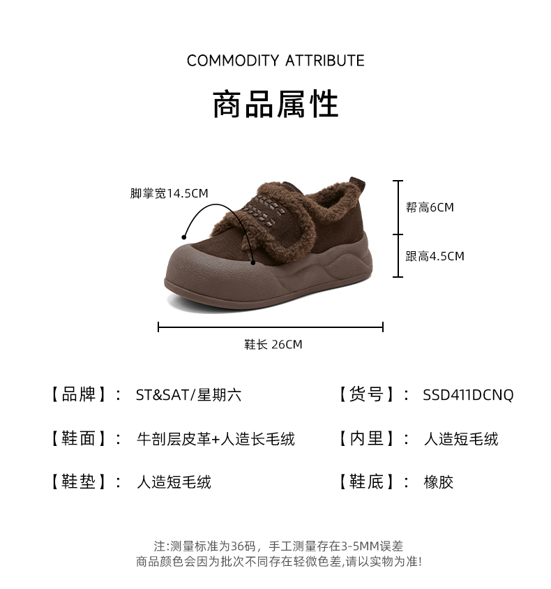 星期六保暖魔术贴厚底防滑面包鞋SSD411DCNQ