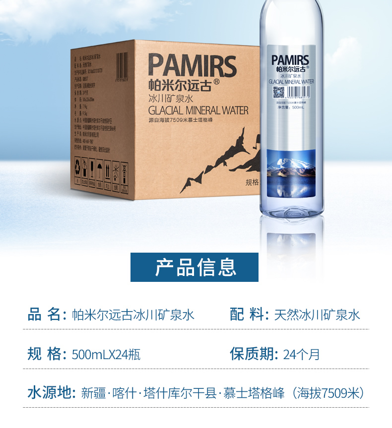 帕米尔远古冰川矿泉水500ml*24瓶