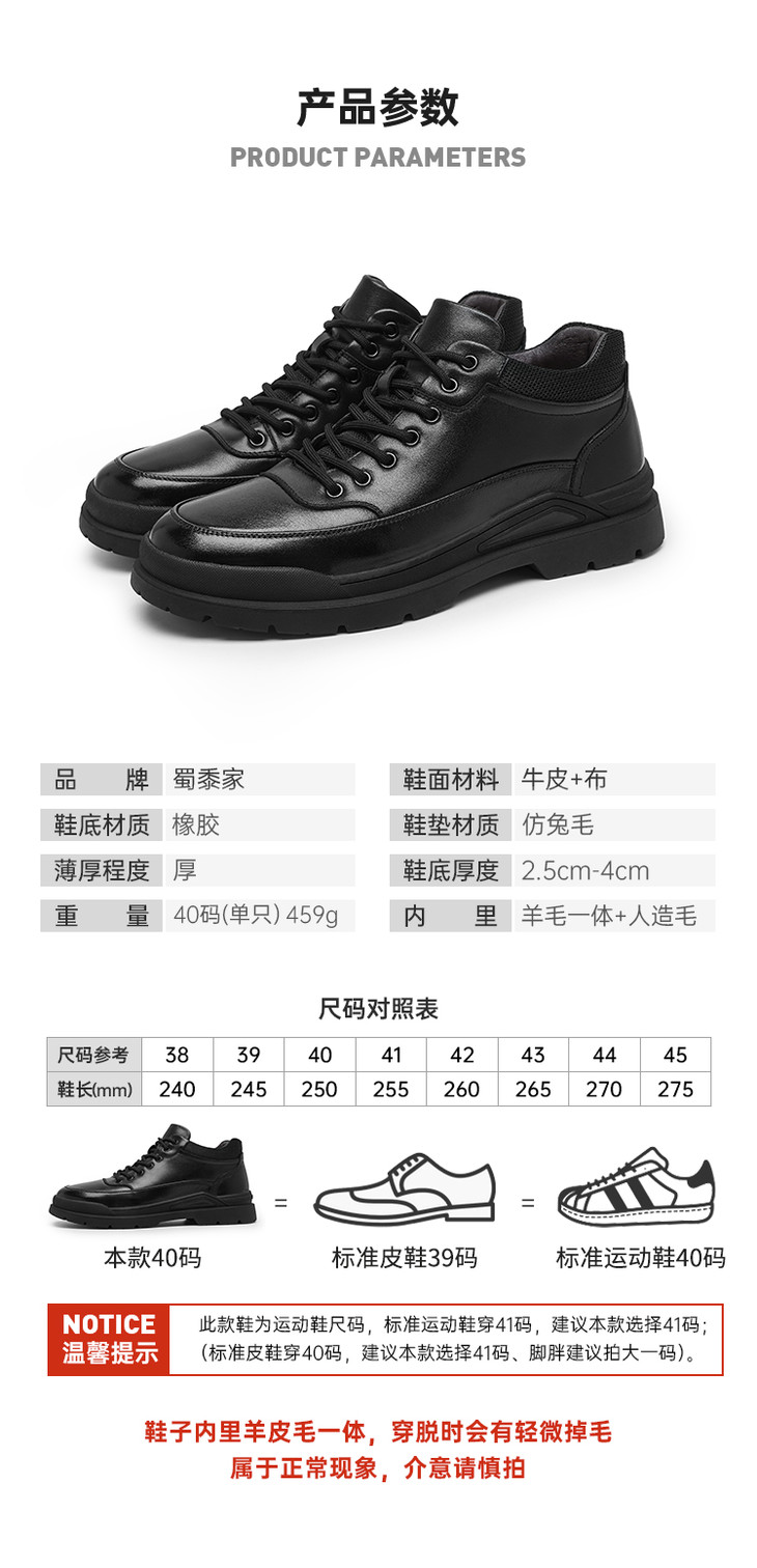 【羊皮毛抗寒棉鞋】烈焰守护系列加绒保暖棉鞋 冬季防风中帮牛皮皮鞋