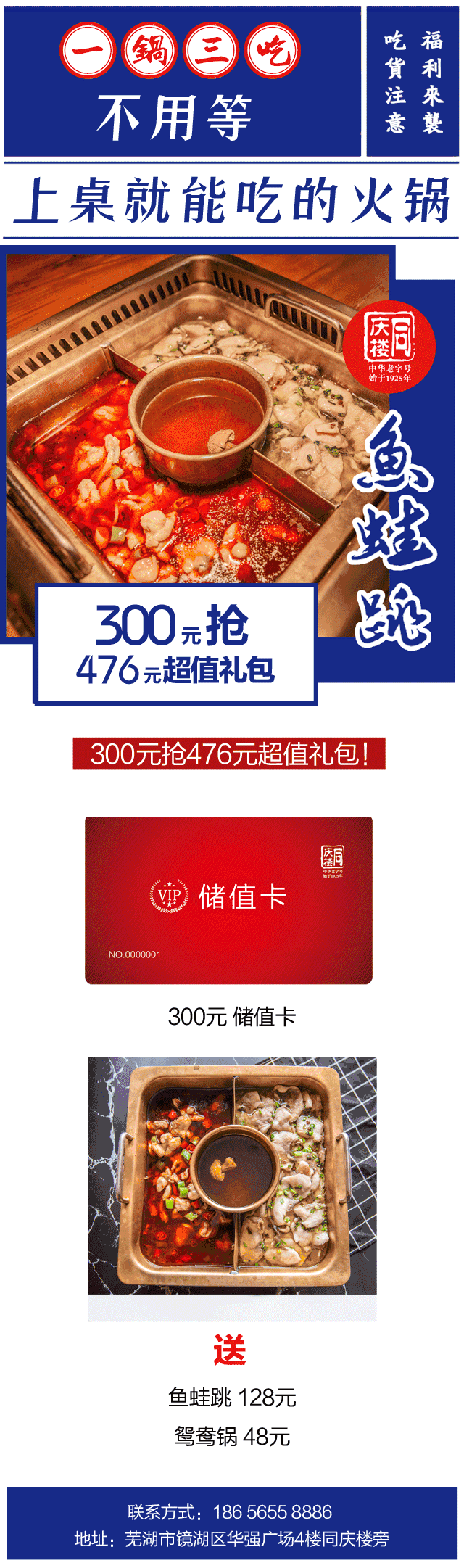 300元抢476超值礼包(仅限芜湖华强广场同庆楼•鱼蛙跳主题餐厅使用)