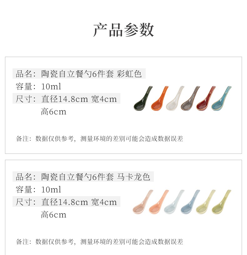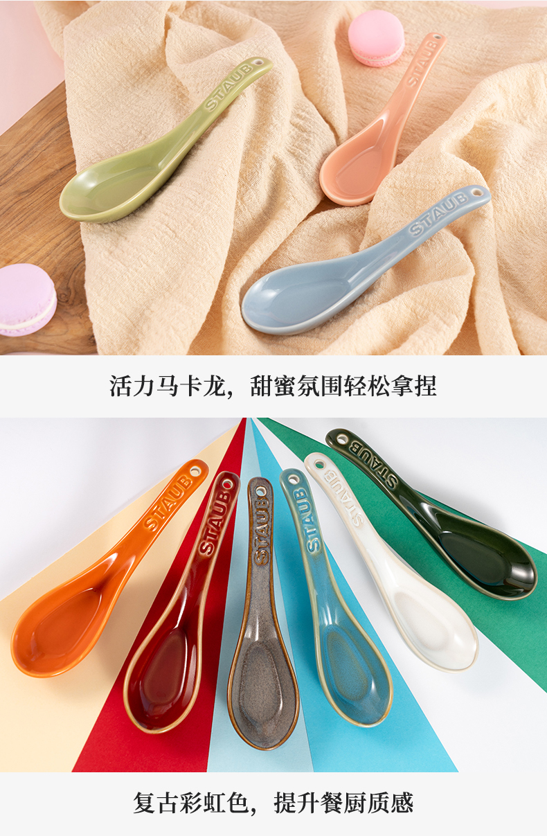 【柏联B1】双立人staub轻奢珐琅陶瓷马卡龙色/彩虹色高颜值自立餐勺饭勺6只装(满2000元包邮)