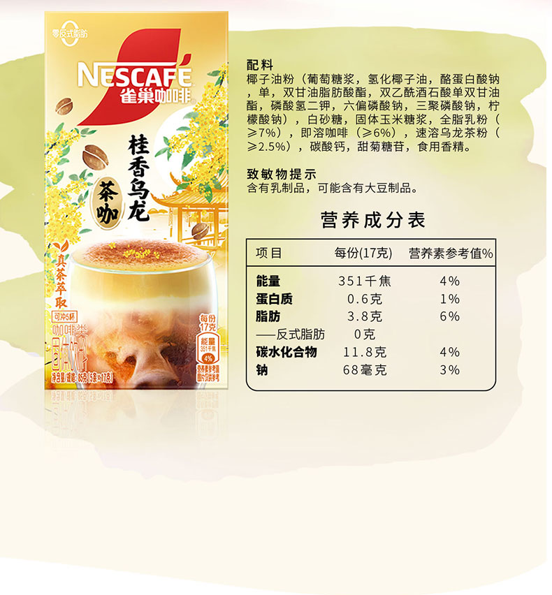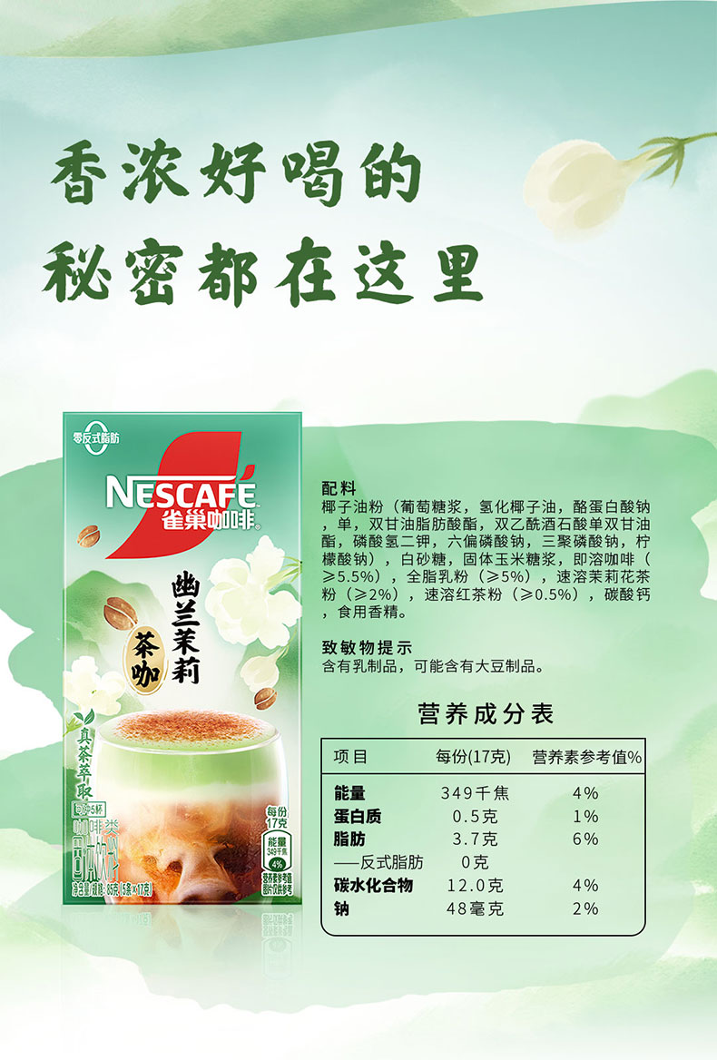 5条装雀巢特调茶咖速溶咖啡乌龙茉莉新包装