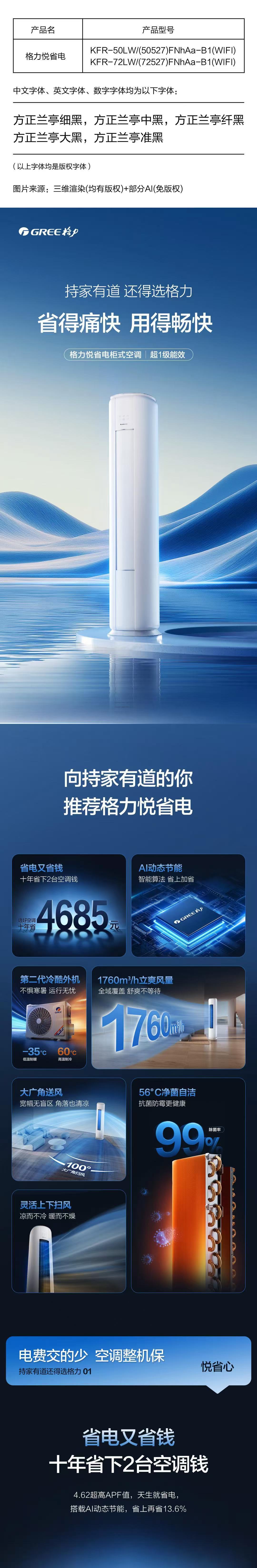悦省电变频冷暖1级能效柜机空调(WIFI)(皓雪白)50527/72527