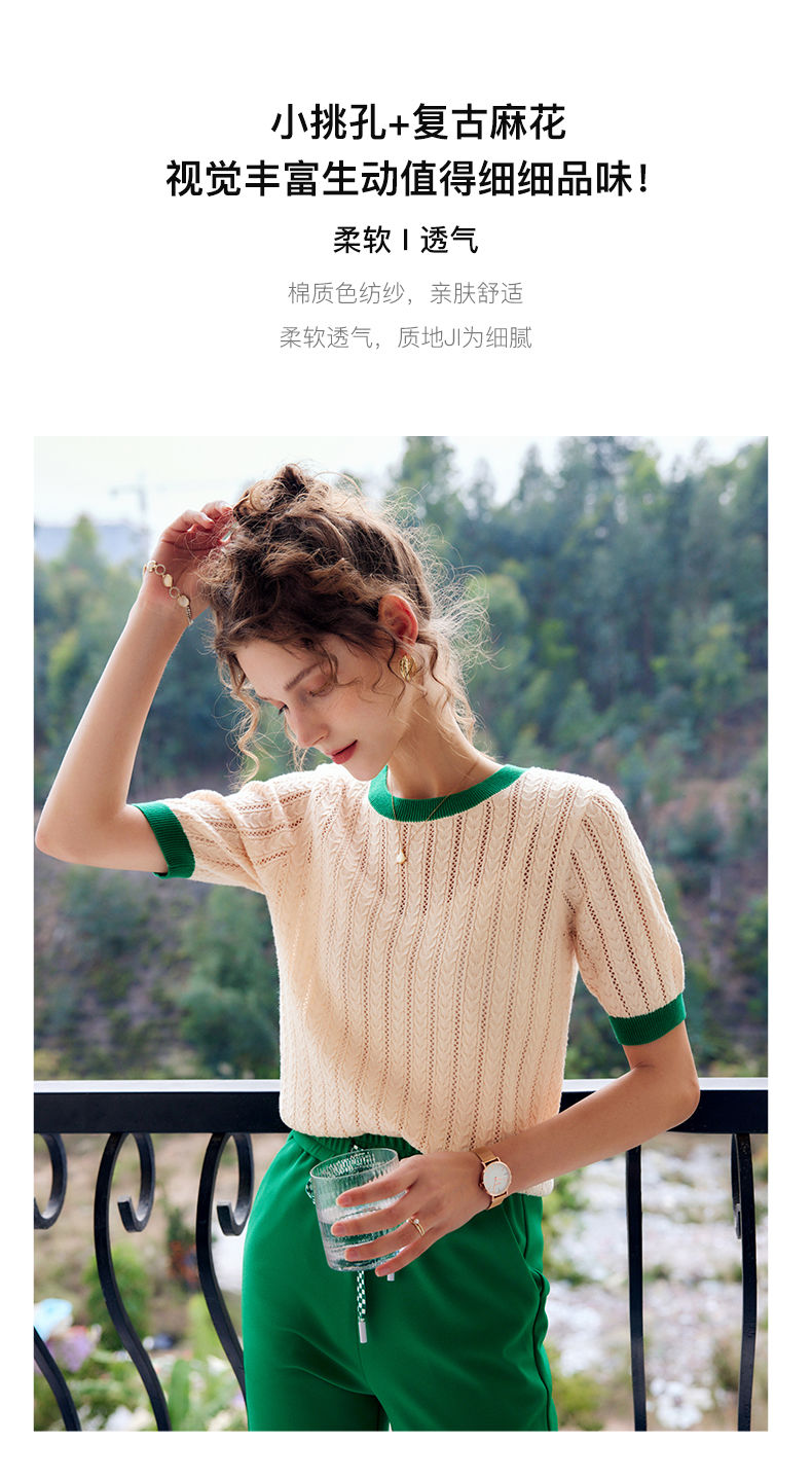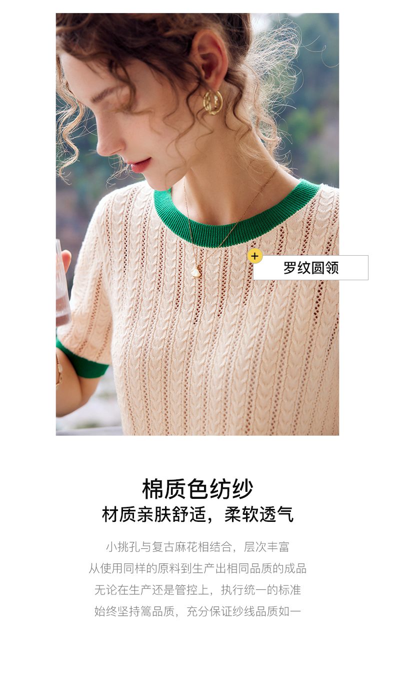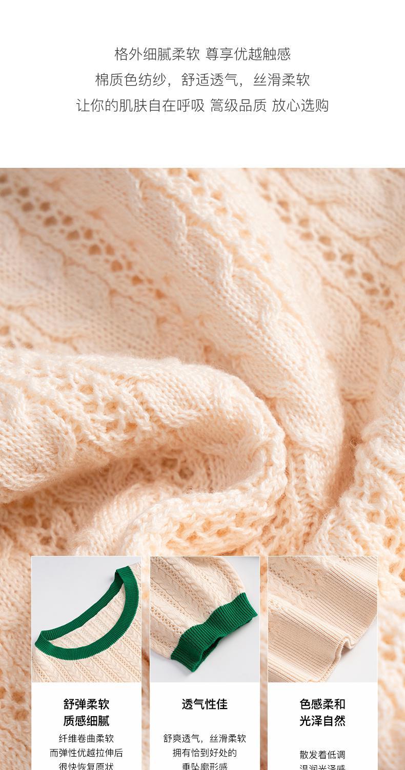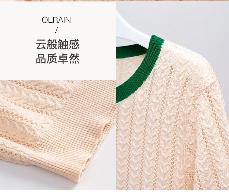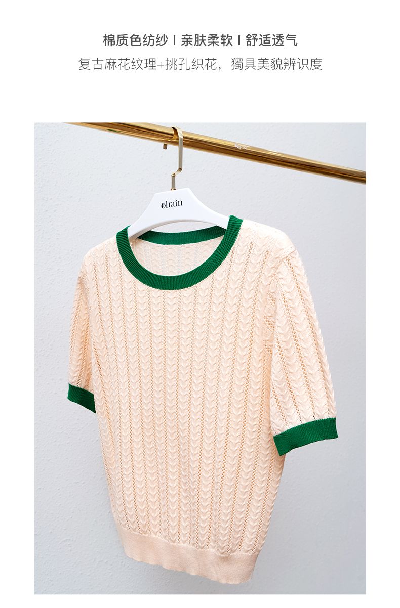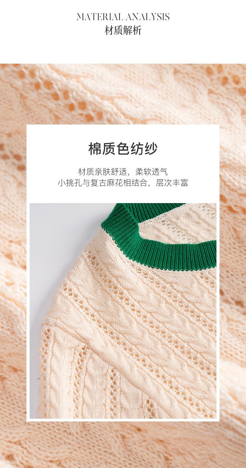 欧芮儿套头针织衫女夏季2022年新款时尚复古镂空撞色麻花薄款上衣