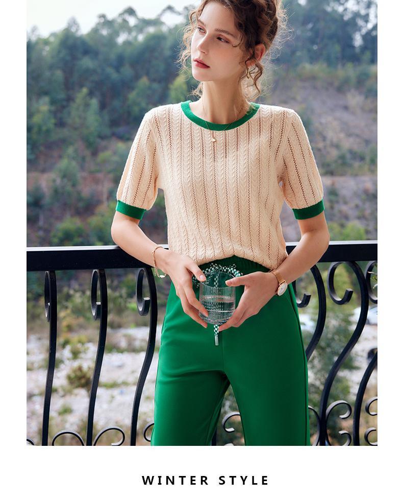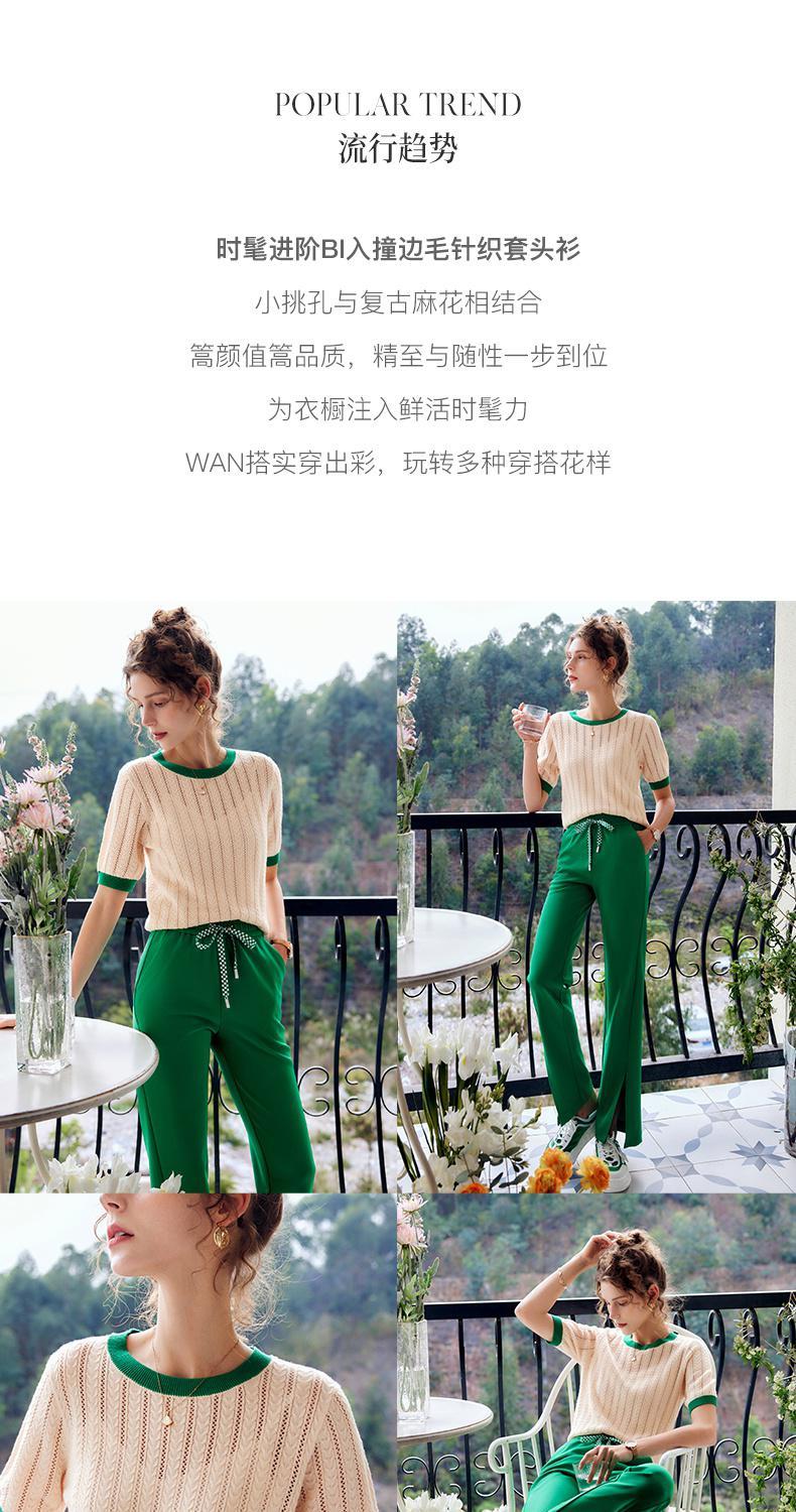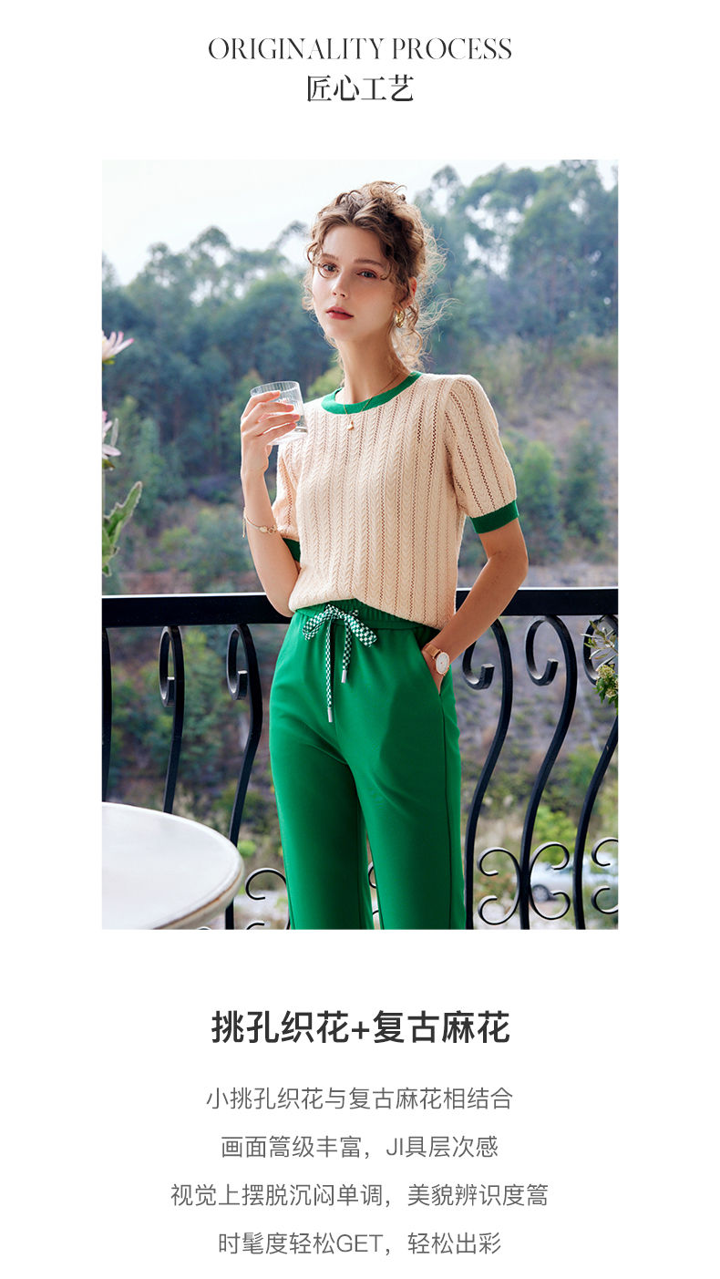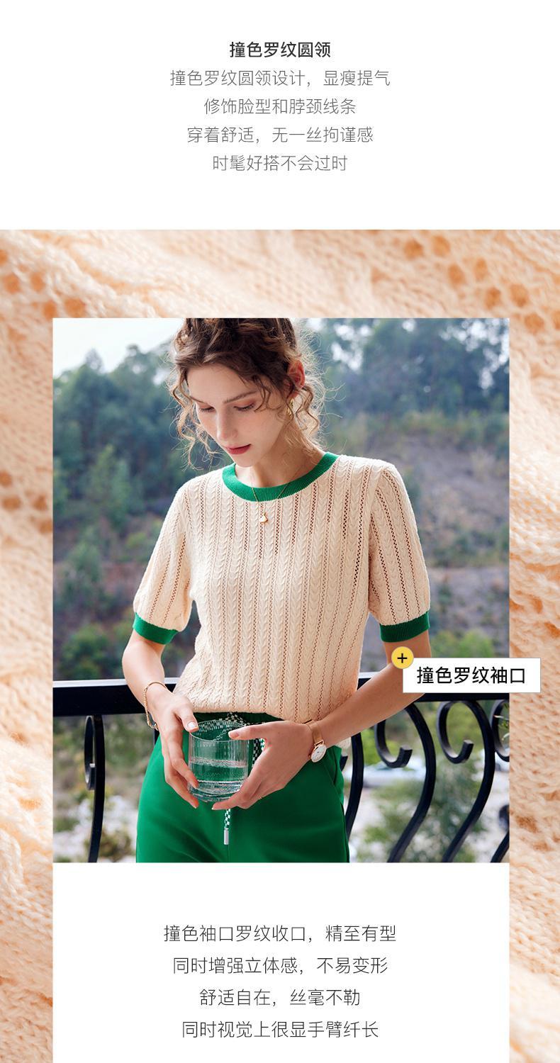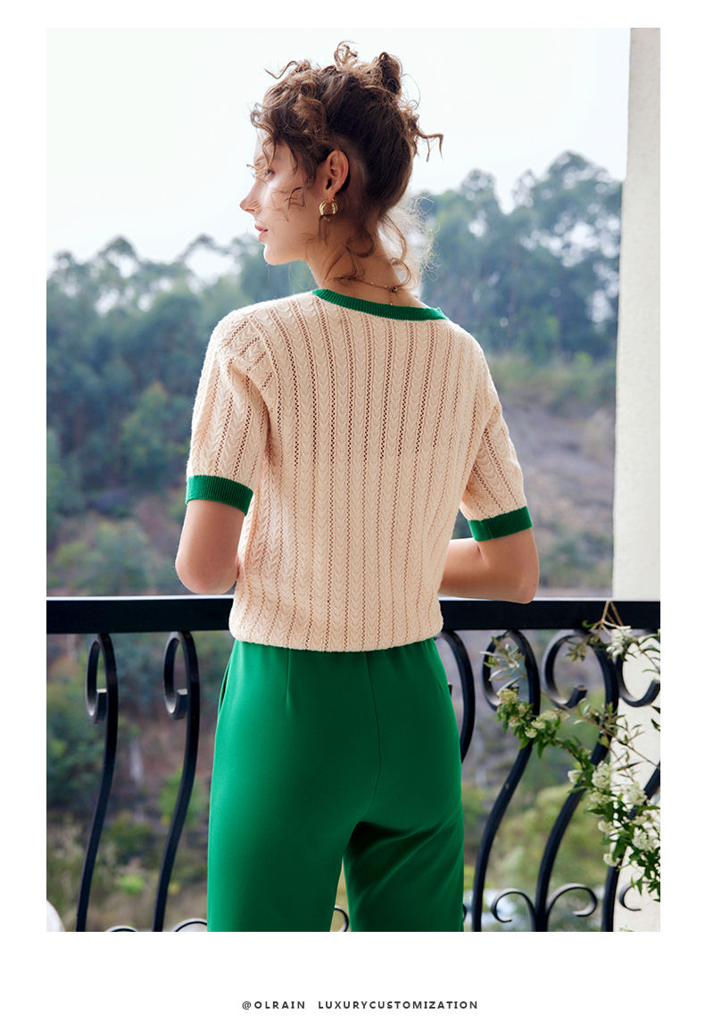 欧芮儿套头针织衫女夏季2022年新款时尚复古镂空撞色麻花薄款上衣