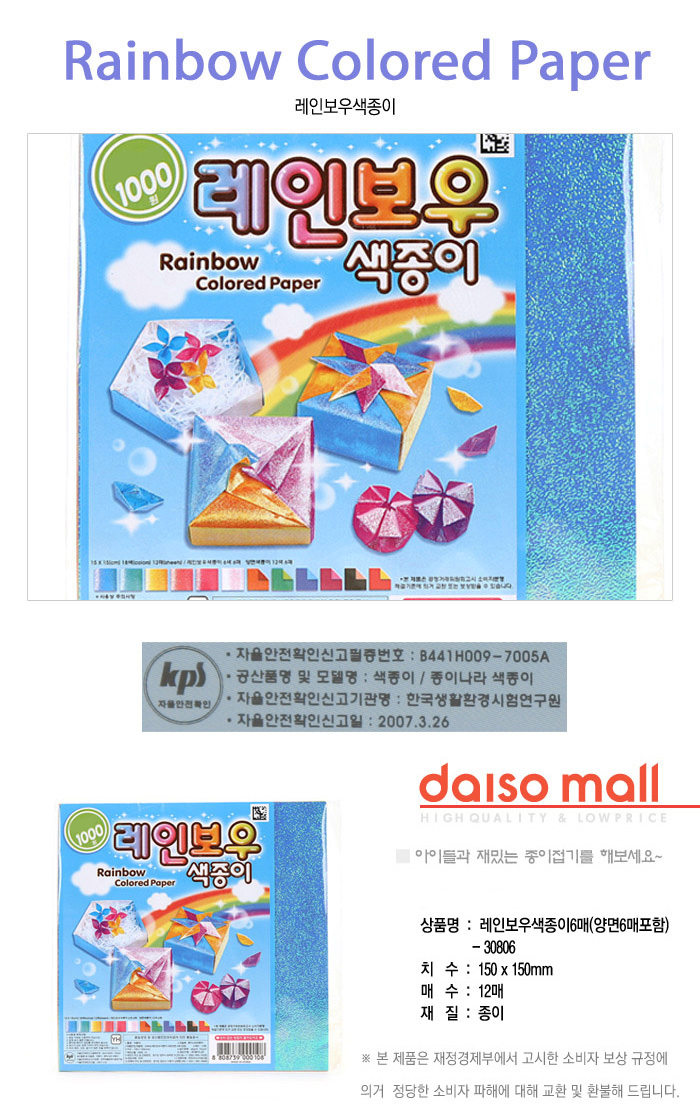 [Daiso] Rainbow colored paper [大创]彩色纸 包括双面6张-30806JPY带授权招加盟代理