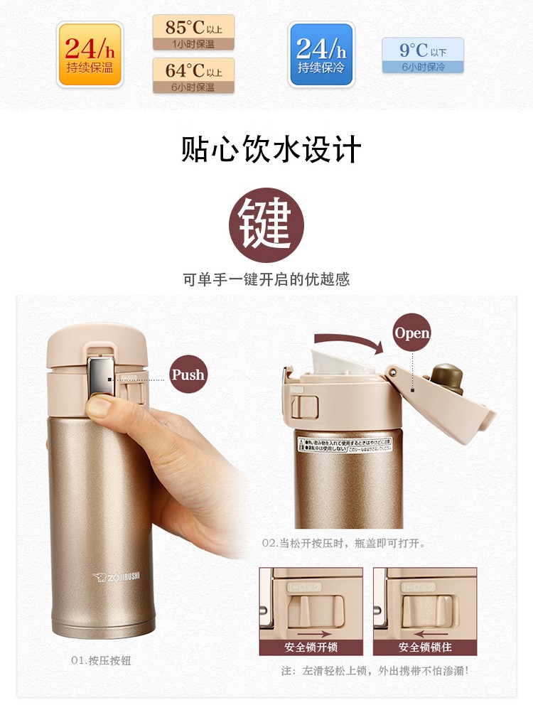 ZOJIRUSHI/象印 不锈钢真空保温杯 SM-KB36 360MLJPY带授权招加盟代理