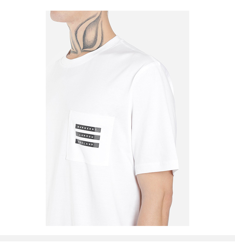 BURBERRY 巴宝莉 男士胶带印花棉质圆领短袖T恤 白色 8021843 A1464
