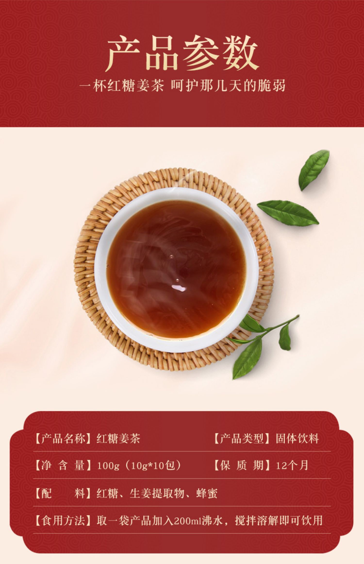 美灵宝多喝茶红色1号红糖姜茶10g*10