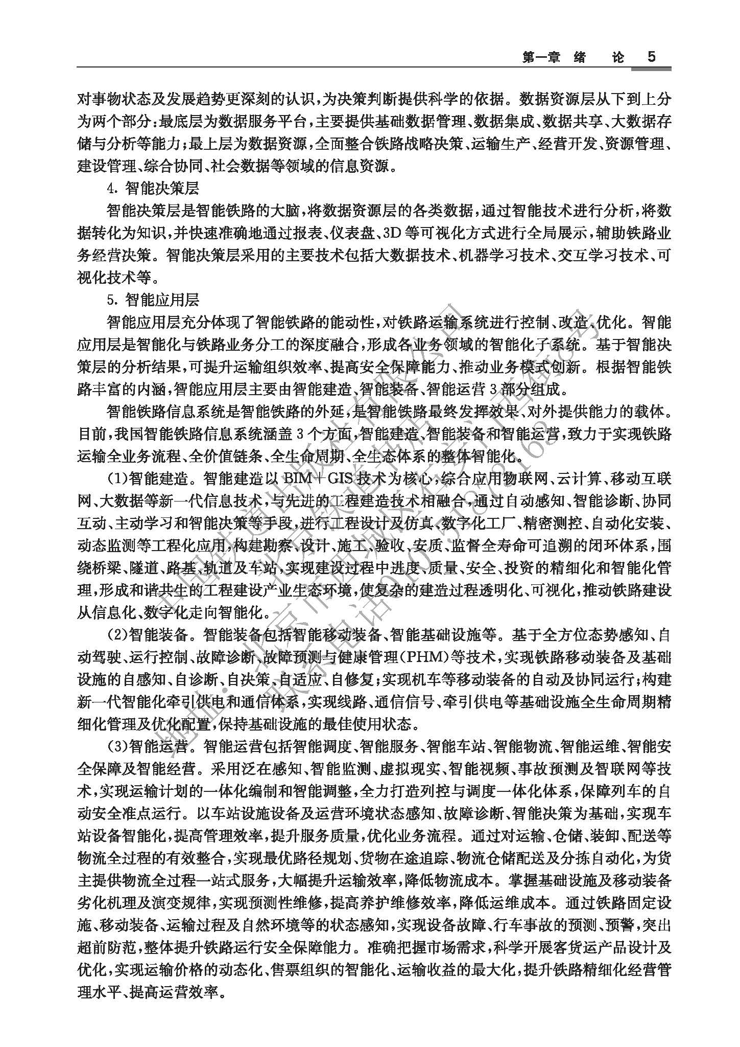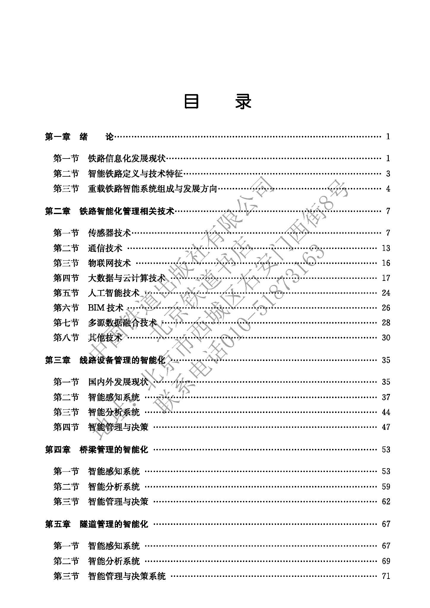 本书着重梳理目前铁路智能化建设现状,讨论智能铁路相关技术、应用原理与方法,从线路设备、桥梁设施、隧道设施、四电设备、移动装备、运营管理、安全管理共九个方面进行分析、梳理和提炼,全面介绍了智能铁路建设方向与基本路线。全书共分九章,第一章绪论;第二章铁路智能化管理相关技术;第三章线路设备管理的智能化;第四章桥梁管理的智能化;第五章隧道管理的智能化;第六章四电设备管理的智能化;第七章移动装备的智能化;第八章运营管理的智能化;第九章安全管理的智能化。