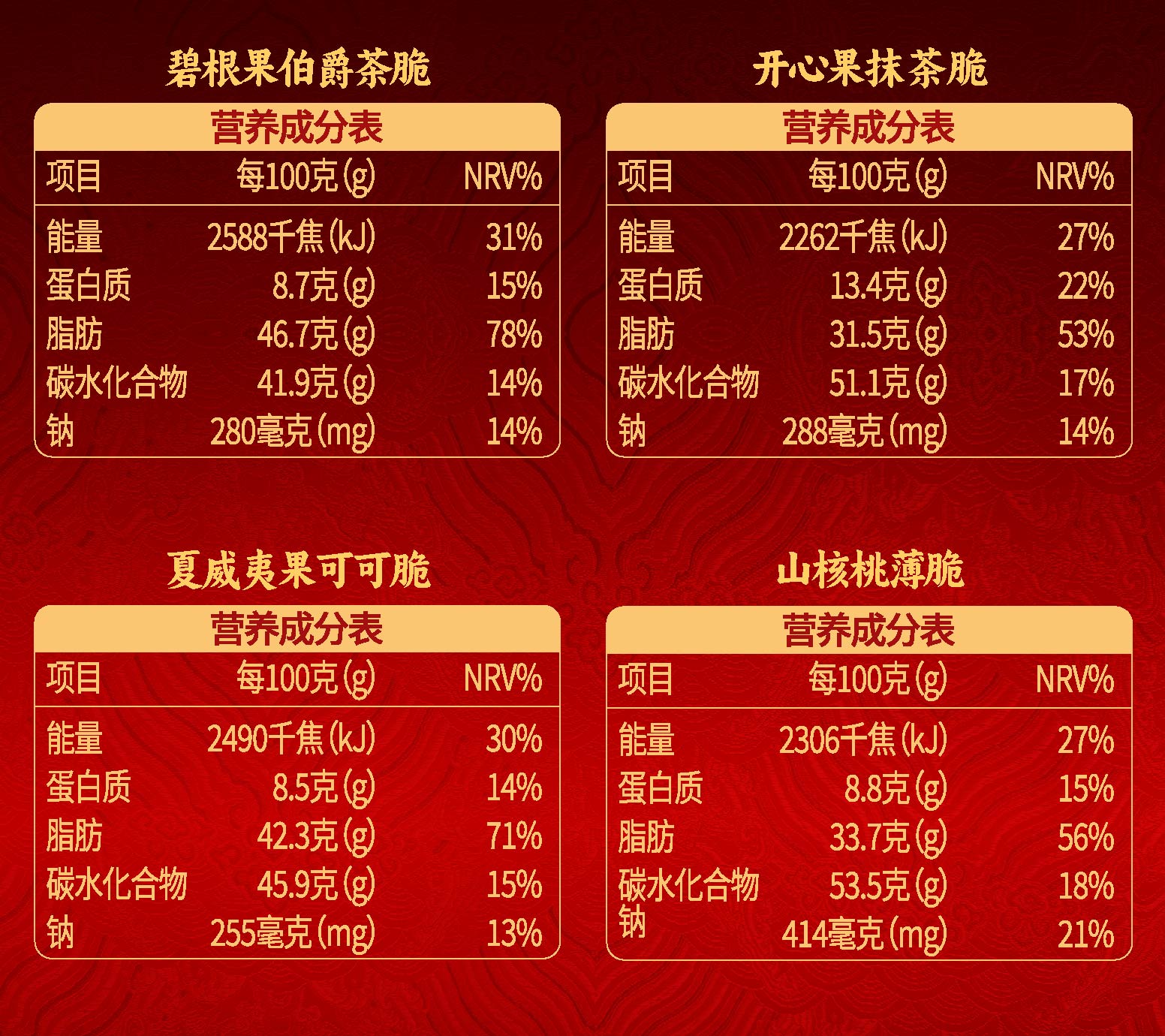 董洁/李诞推荐【熟半点·新年小红花.坚果脆脆礼盒】4罐!山核桃薄脆、夏威夷果可可脆、开心果抹茶脆、碧根果伯爵红茶脆