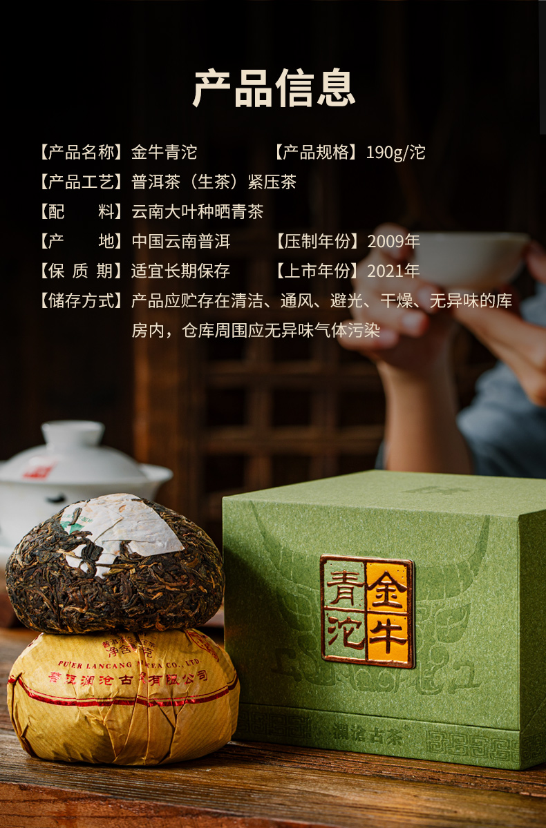 澜沧古茶2021年金牛青沱时光仓普洱茶老生茶190g