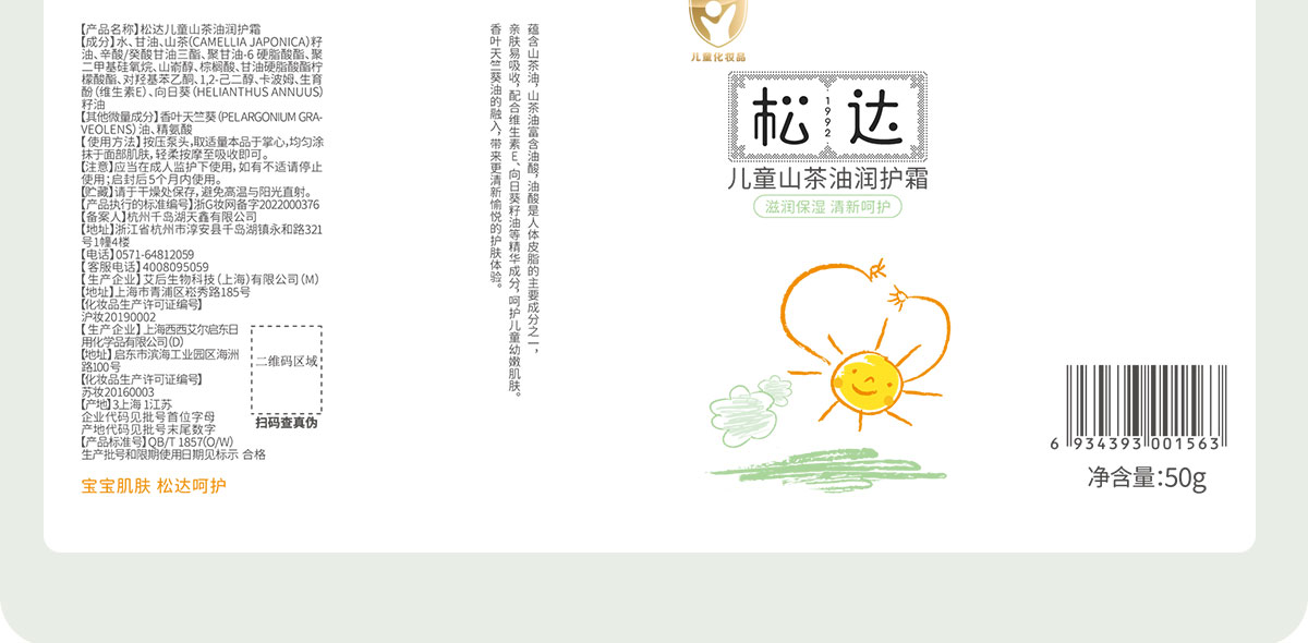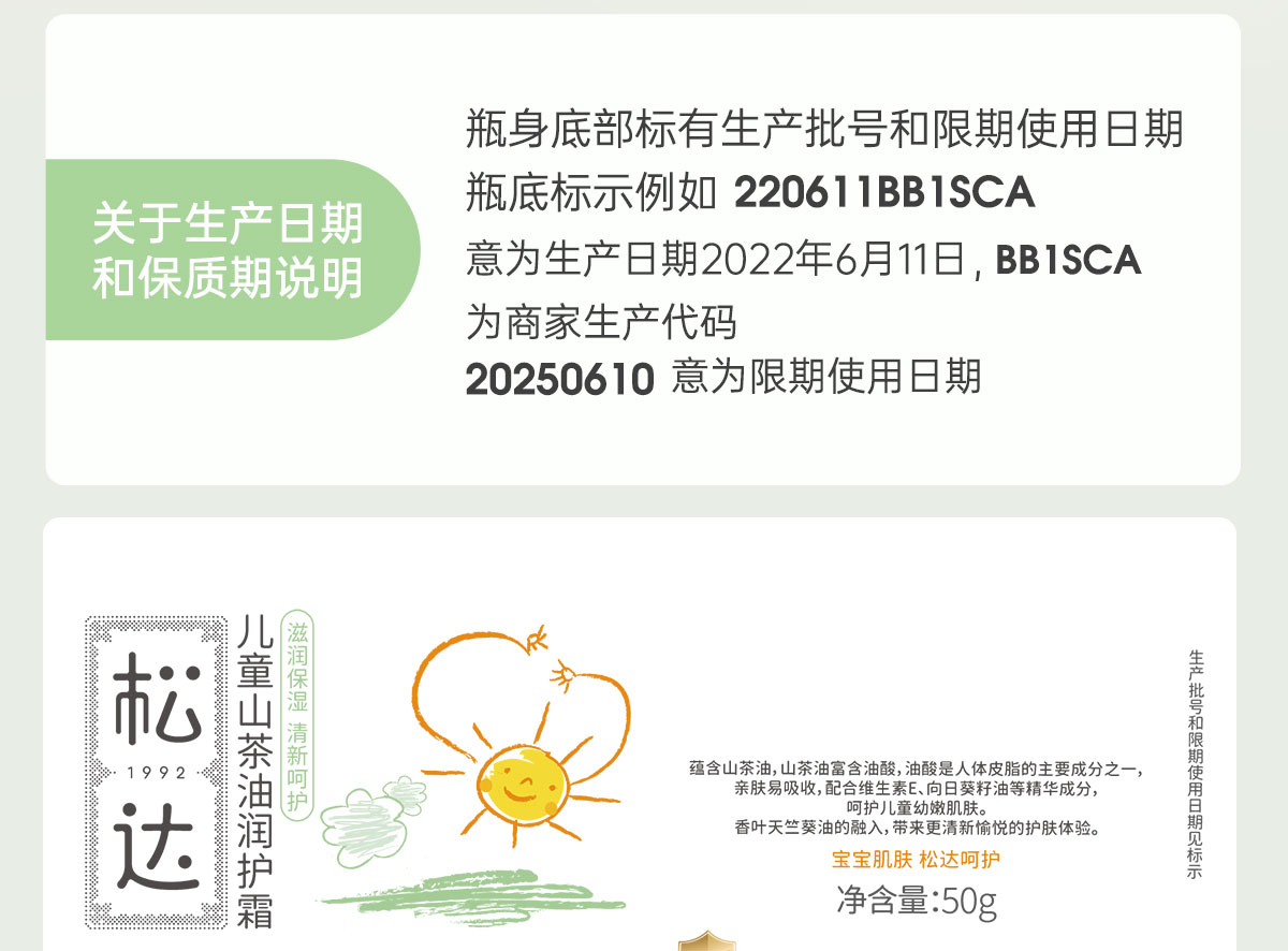松达山茶油儿童面霜宝宝润肤霜舒缓润护霜护肤男童女童特润保湿霜50g