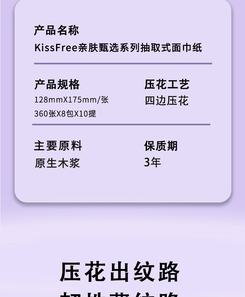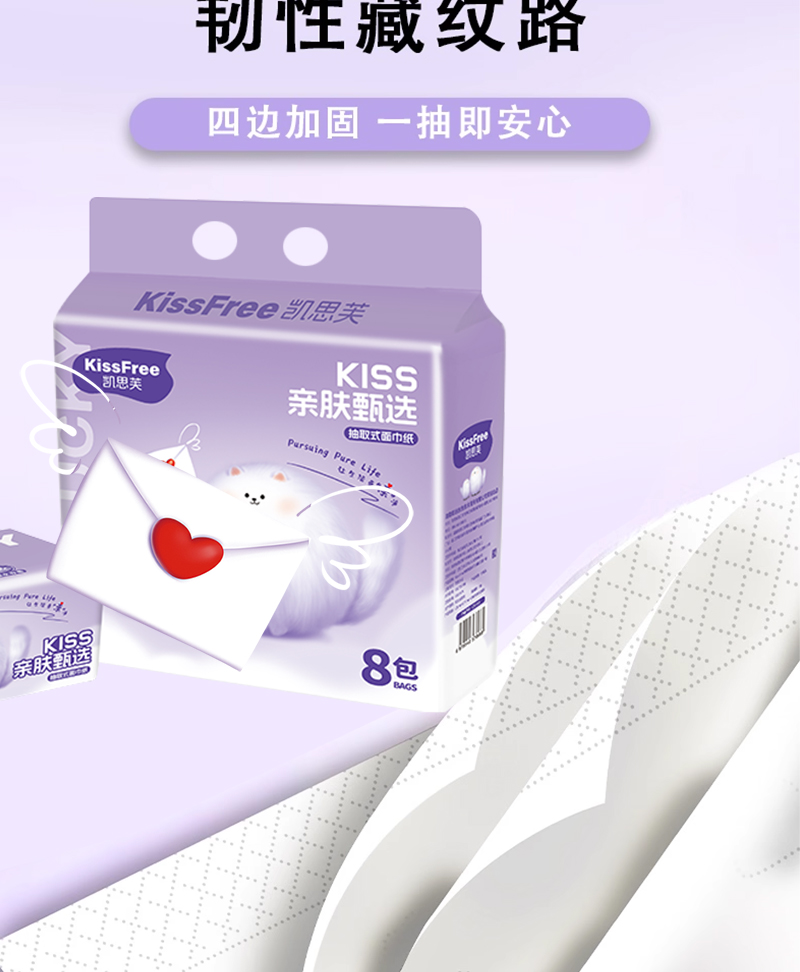 KissFree亲肤甄选系列抽取式面巾纸(8包装)*10提【整箱出售】