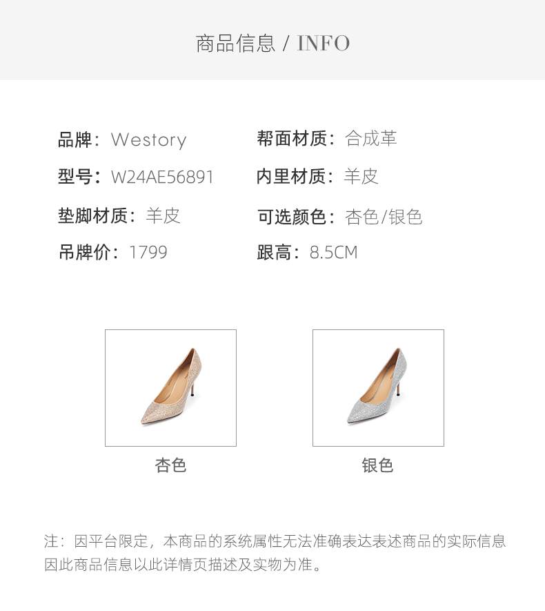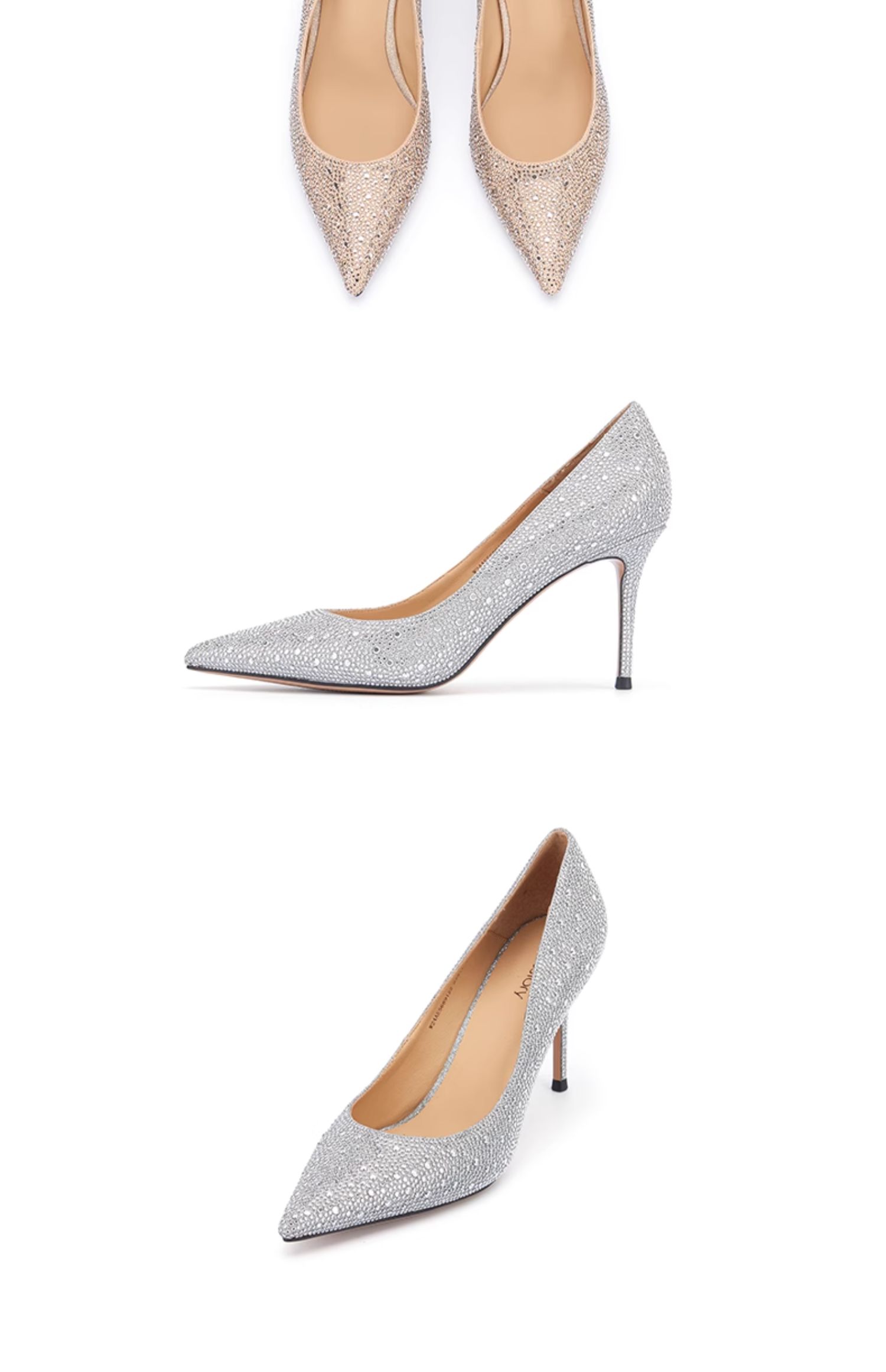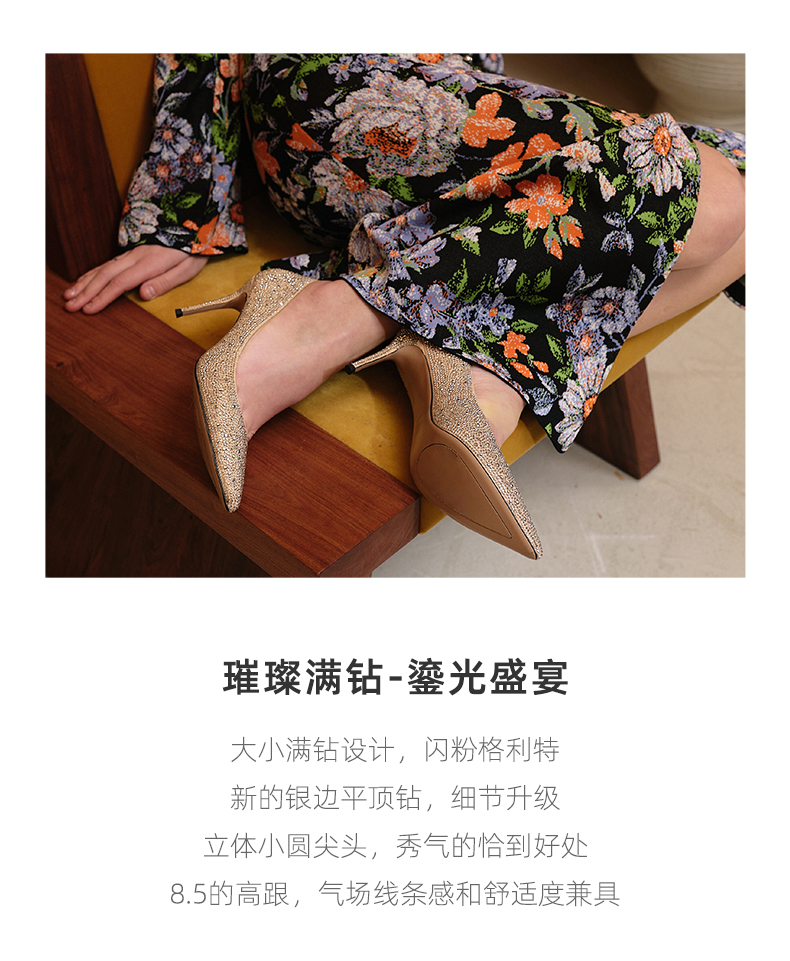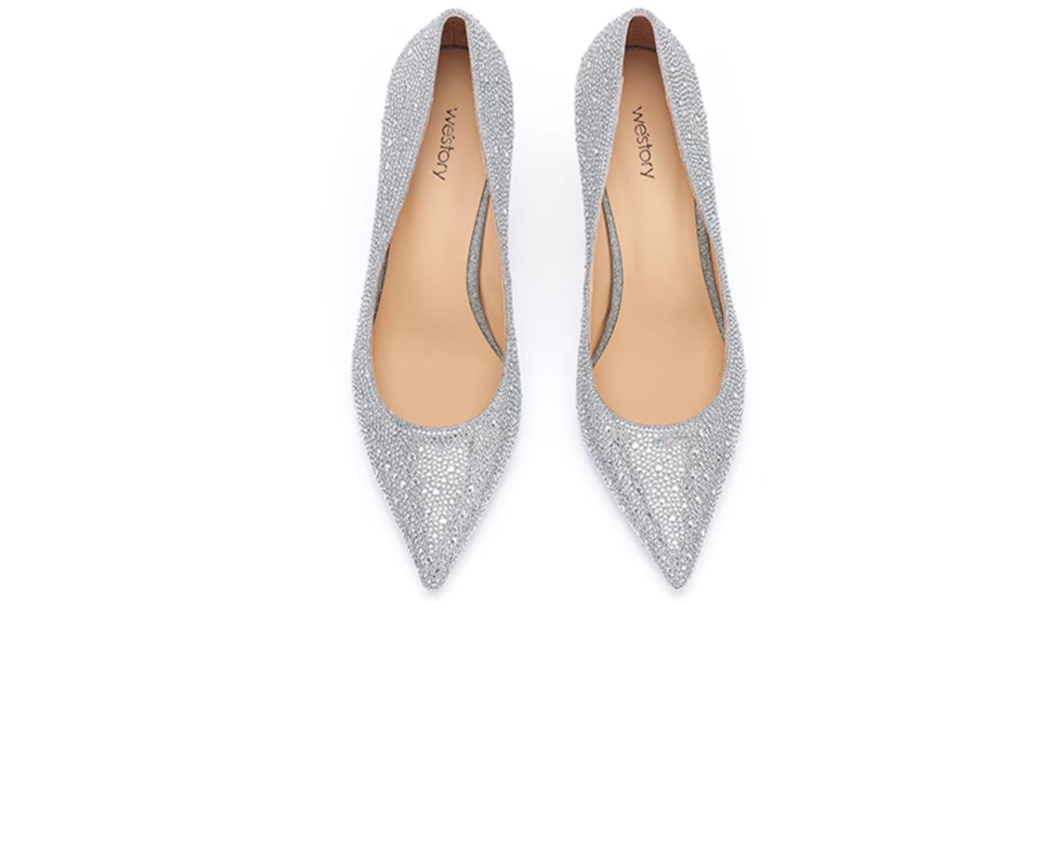 westory2024春季新款立体小圆尖头水钻细跟高跟鞋水晶婚鞋W24AE56891