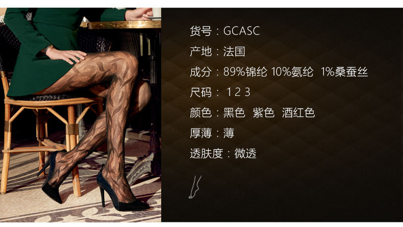 Gerbe格伯 100%法国原装进口透视曲线3D网纹编织女丝袜 GCASC 12d