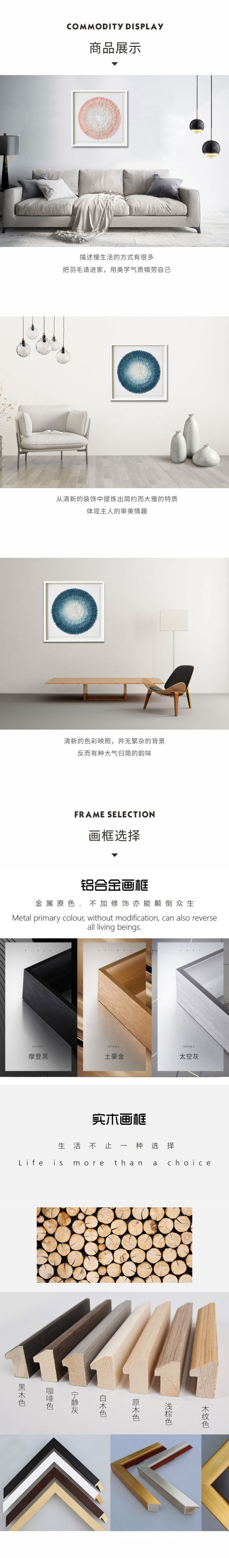 ZD·蓝色圆形羽翼装饰画工艺画