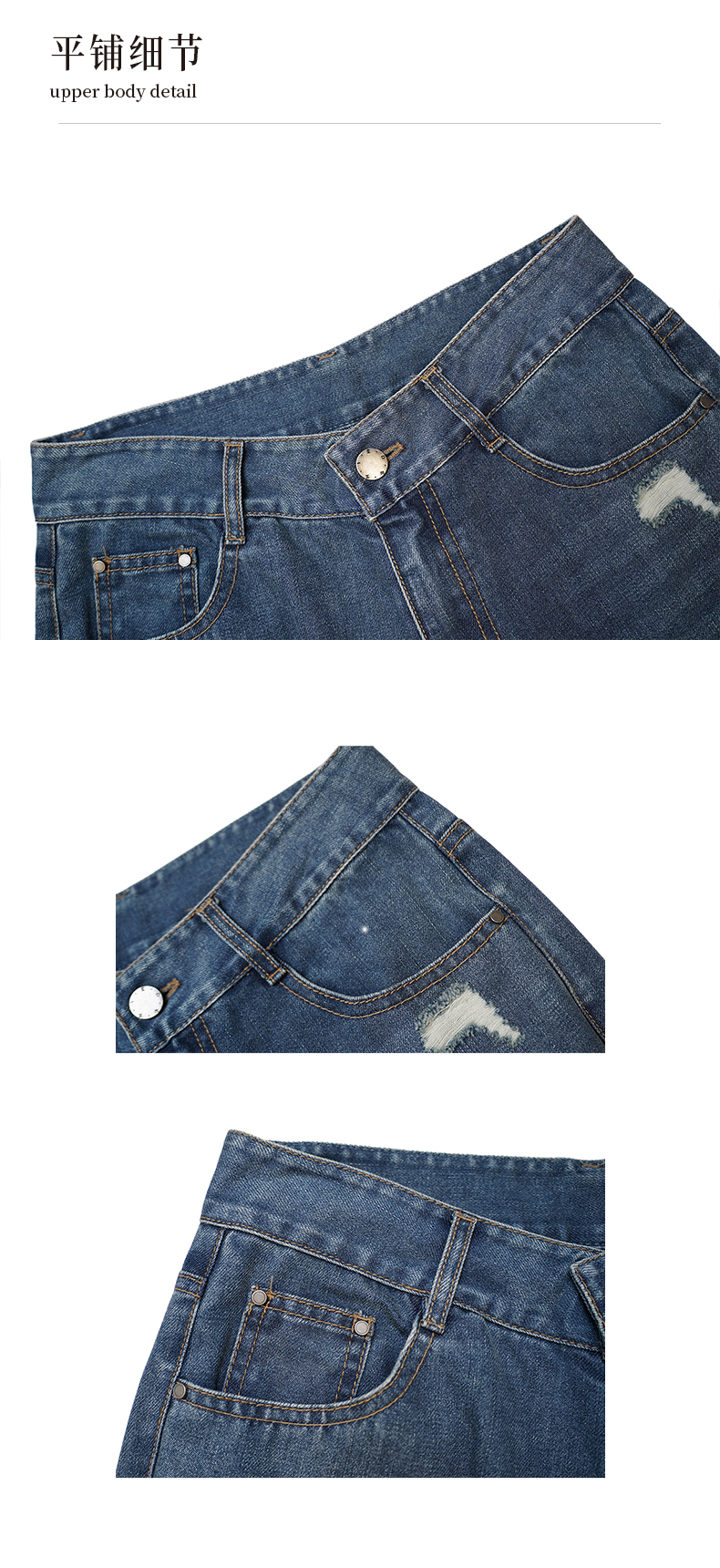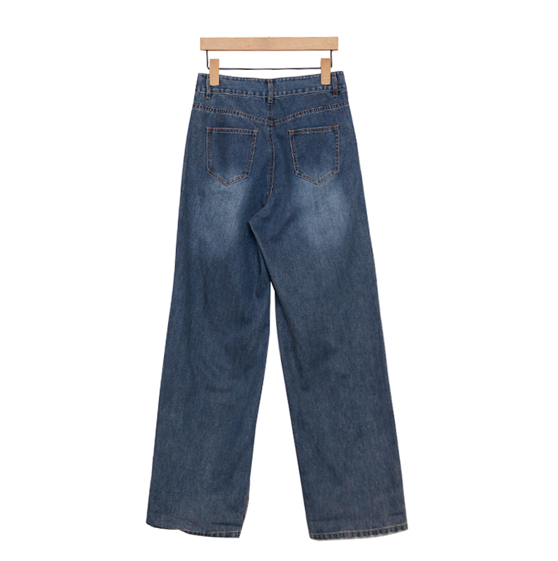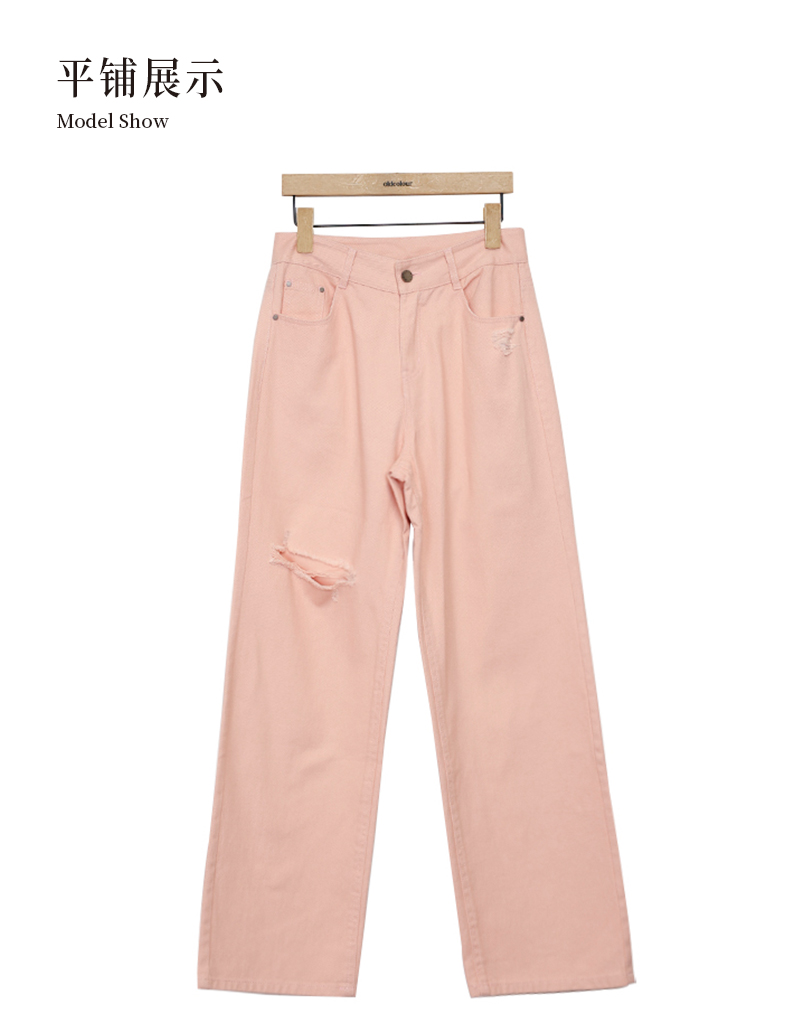 oldcolour高腰牛仔裤春季新款复古破洞气质阔腿长裤女P12113266