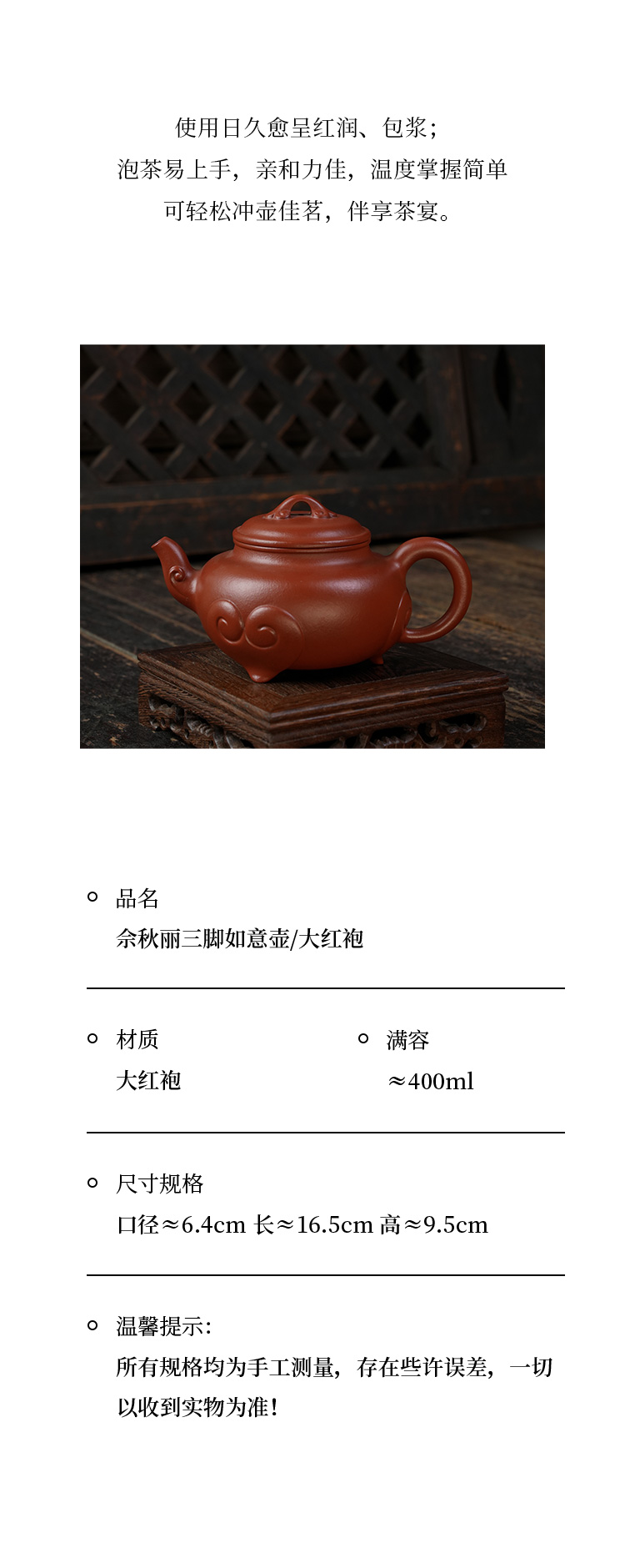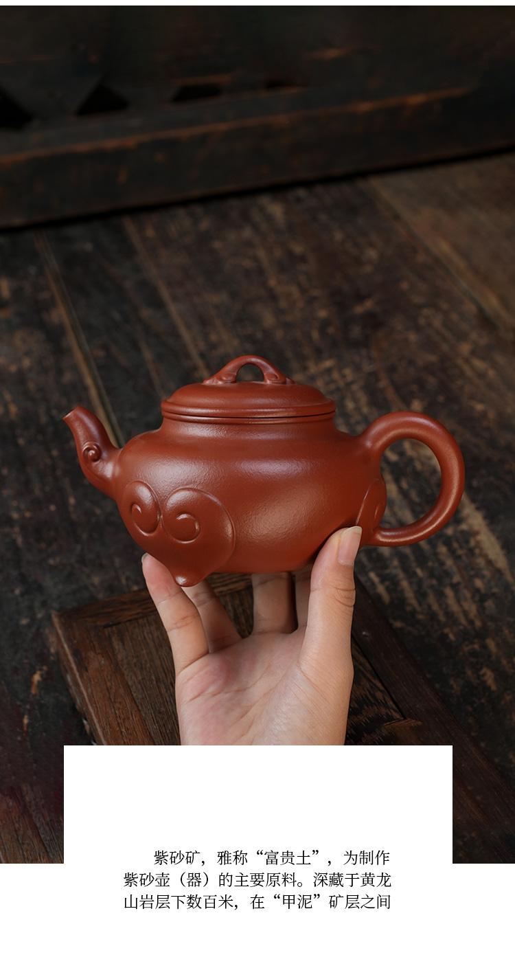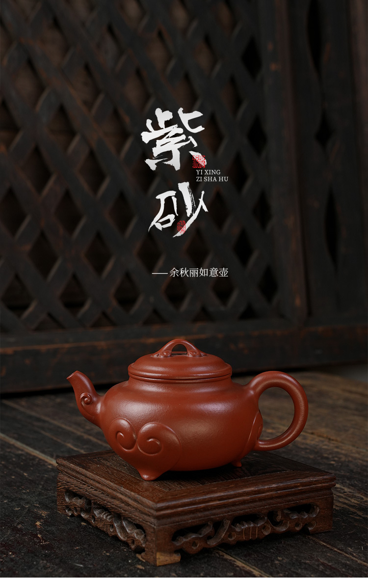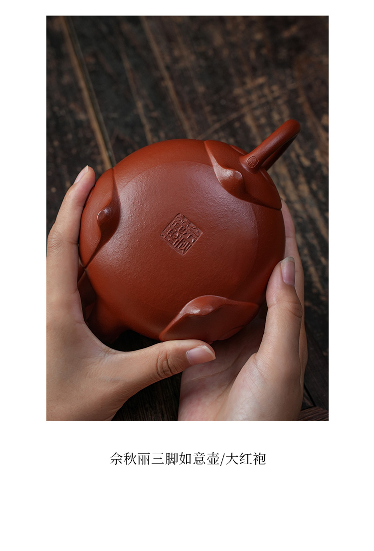 佘秋丽三脚如意壶 大红袍 宜兴紫砂原矿茶壶紫砂壶功夫茶泡茶壶茶具仿古