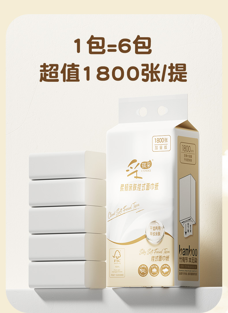 【超值体验】若禺采琪采系列挂式软抽纸4层加厚1800张/提加量装原生木浆柔软舒适耐用家庭装RR1302
