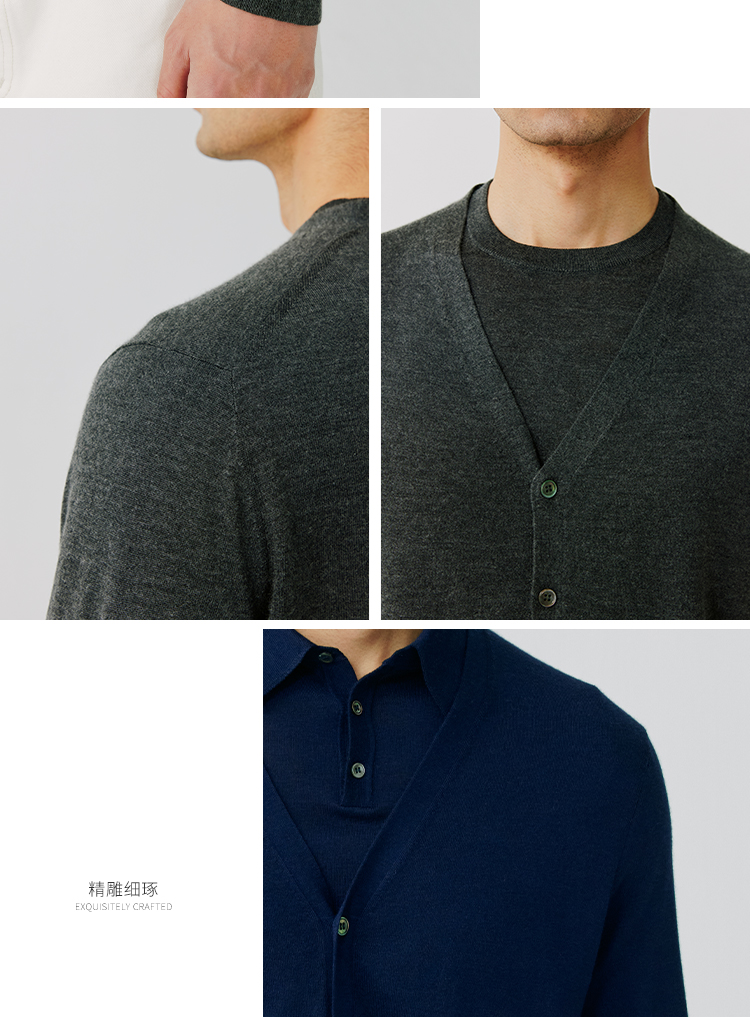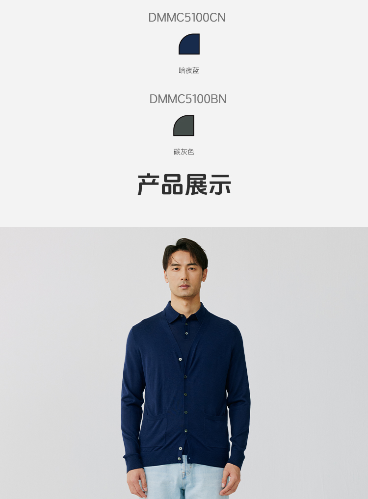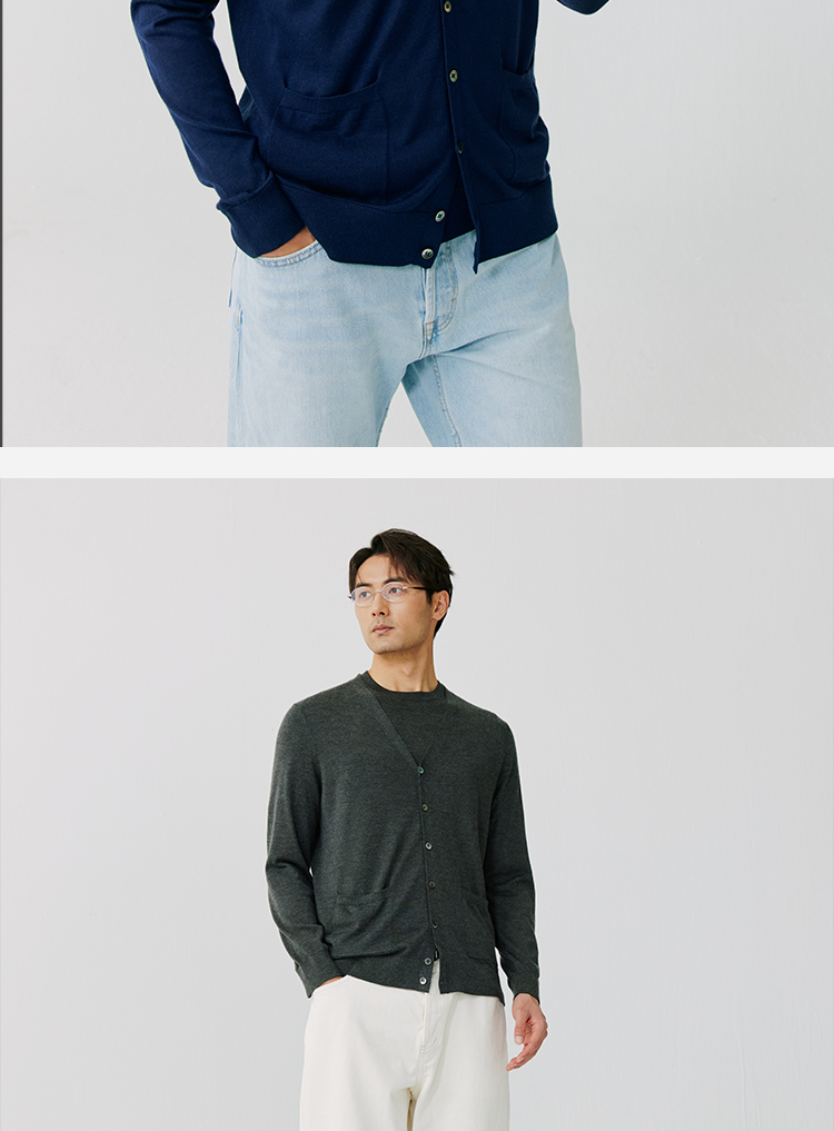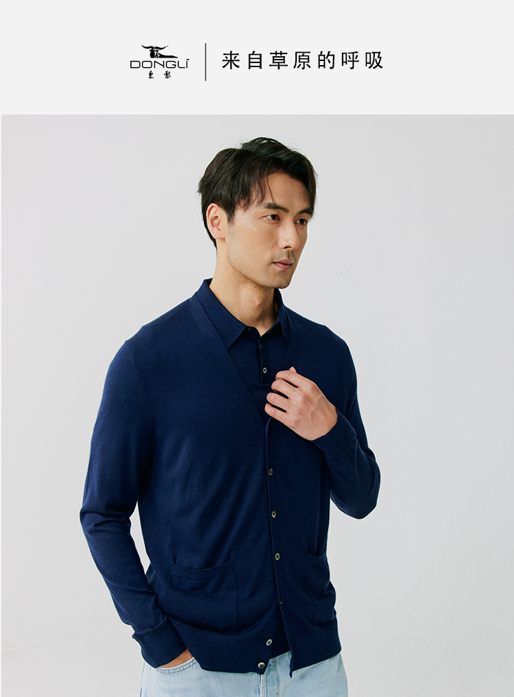 东黎 • 桑蚕丝山羊绒男士春夏针织精纺V领开衫简约休闲长袖 5100