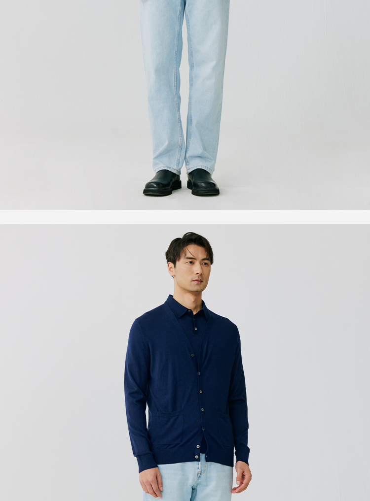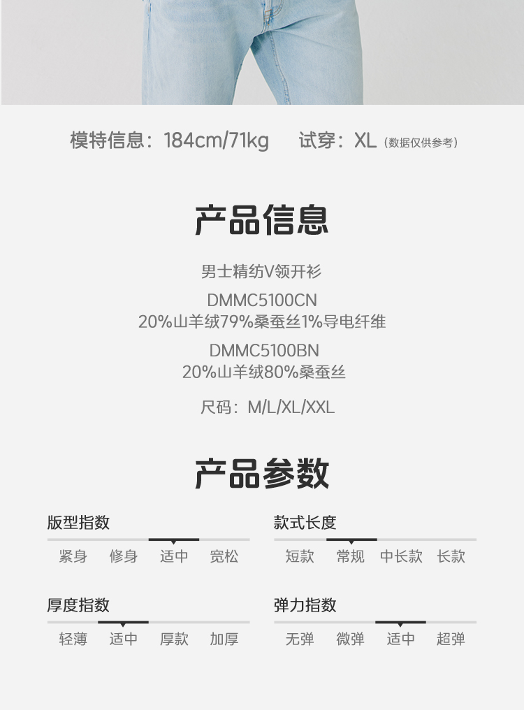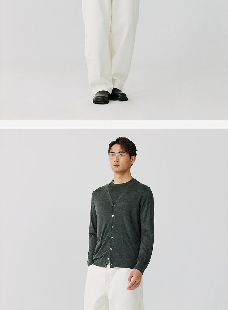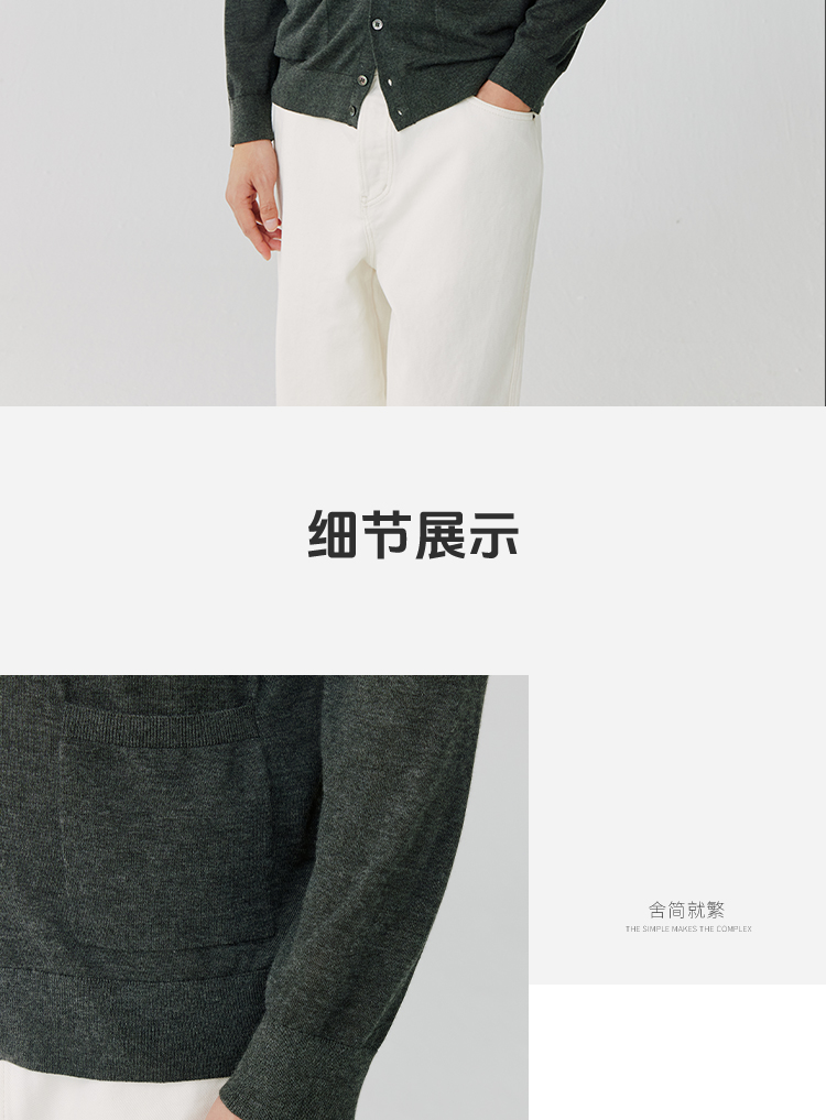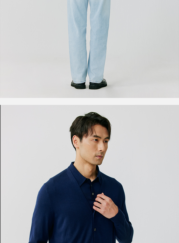 东黎 • 桑蚕丝山羊绒男士春夏针织精纺V领开衫简约休闲长袖 5100