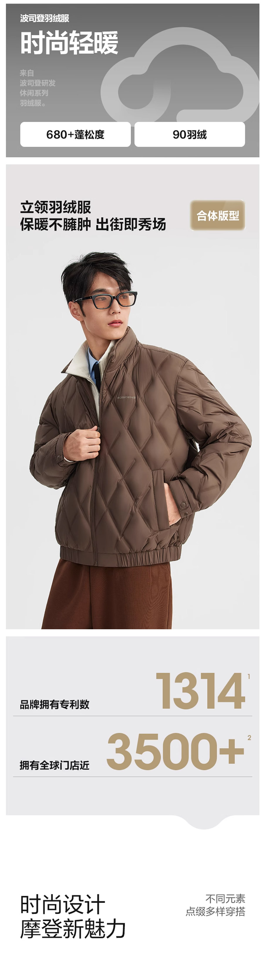 波司登轻薄羽绒服男士短款2025秋冬季新款立领保暖外套B250135321