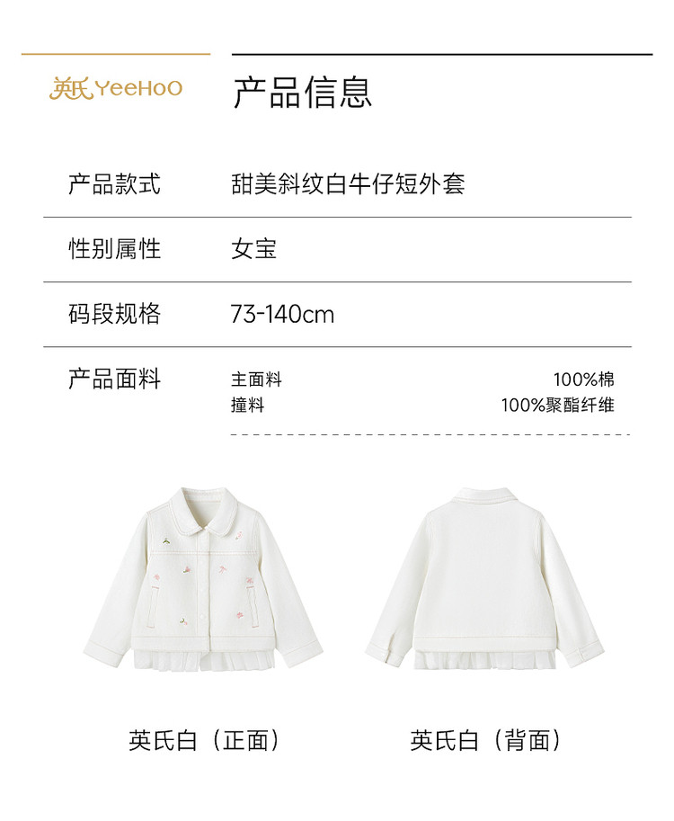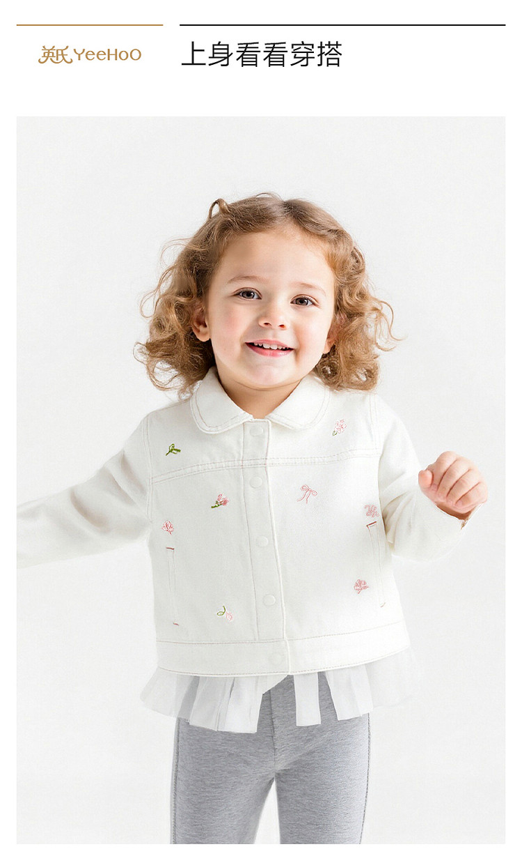 英氏儿童牛仔外套女宝宝春秋纯棉可爱百搭春季衣服YRWBJ1S031A