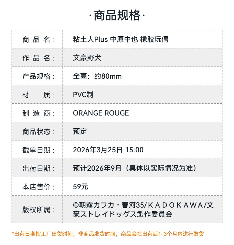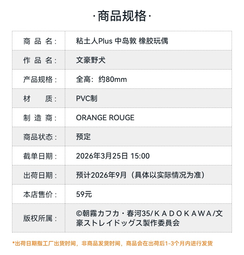 【GSC预售定金】粘土人Plus 中岛敦/太宰治/芥川龙之介/中原中也 橡胶玩偶 文豪野犬
