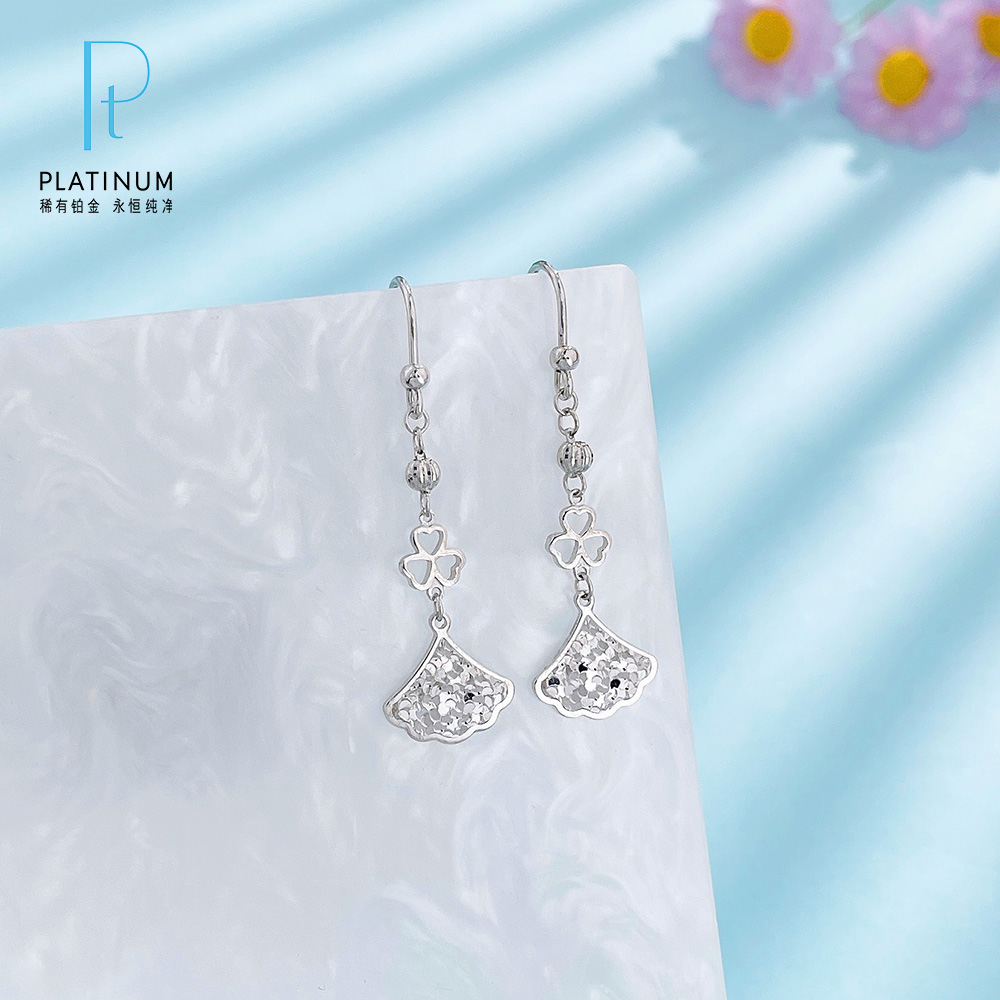 【限时8.8折】【线上铂金馆】PT950 #CNC #碎碎冰 【国际铂金协会 精品】铂金实心碎碎冰小裙子耳饰耳吊耳钩(BES00222)预售产品下单后不退款不退货不换货不补差价)