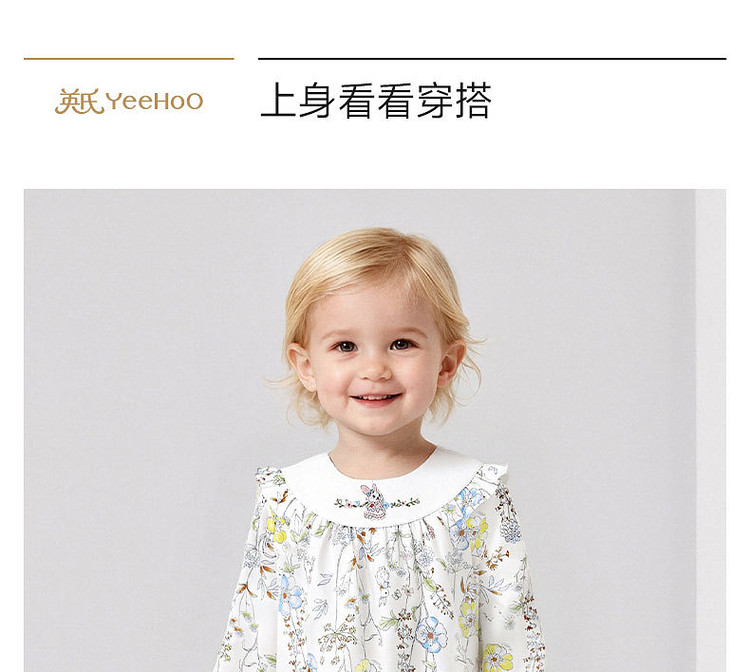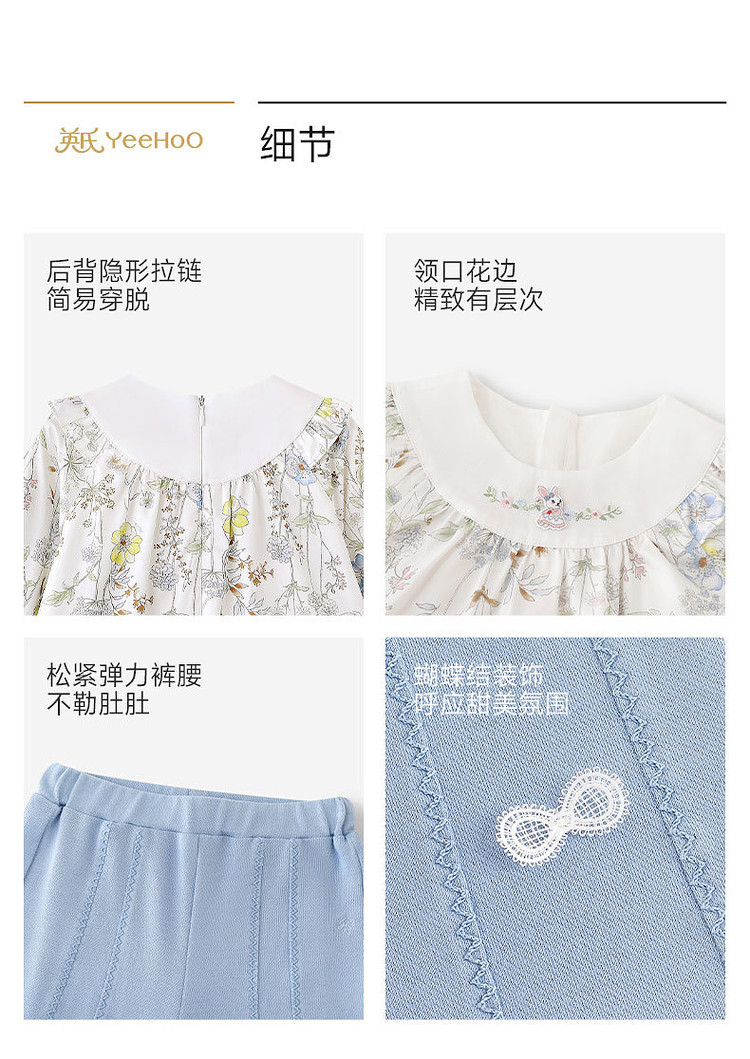 英氏儿童套装女宝宝春秋碎花可爱洋气衣裤套新款YRABJ1S003A