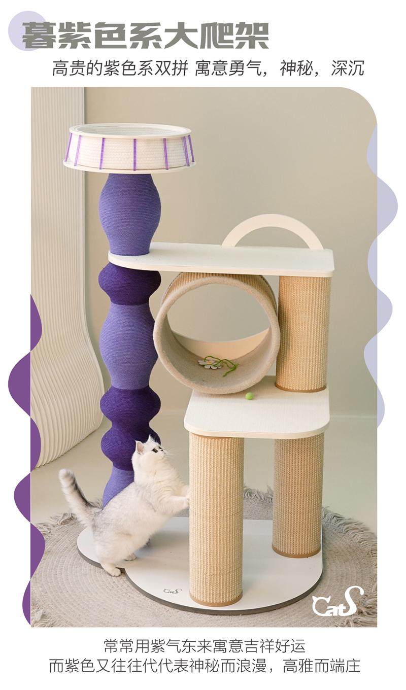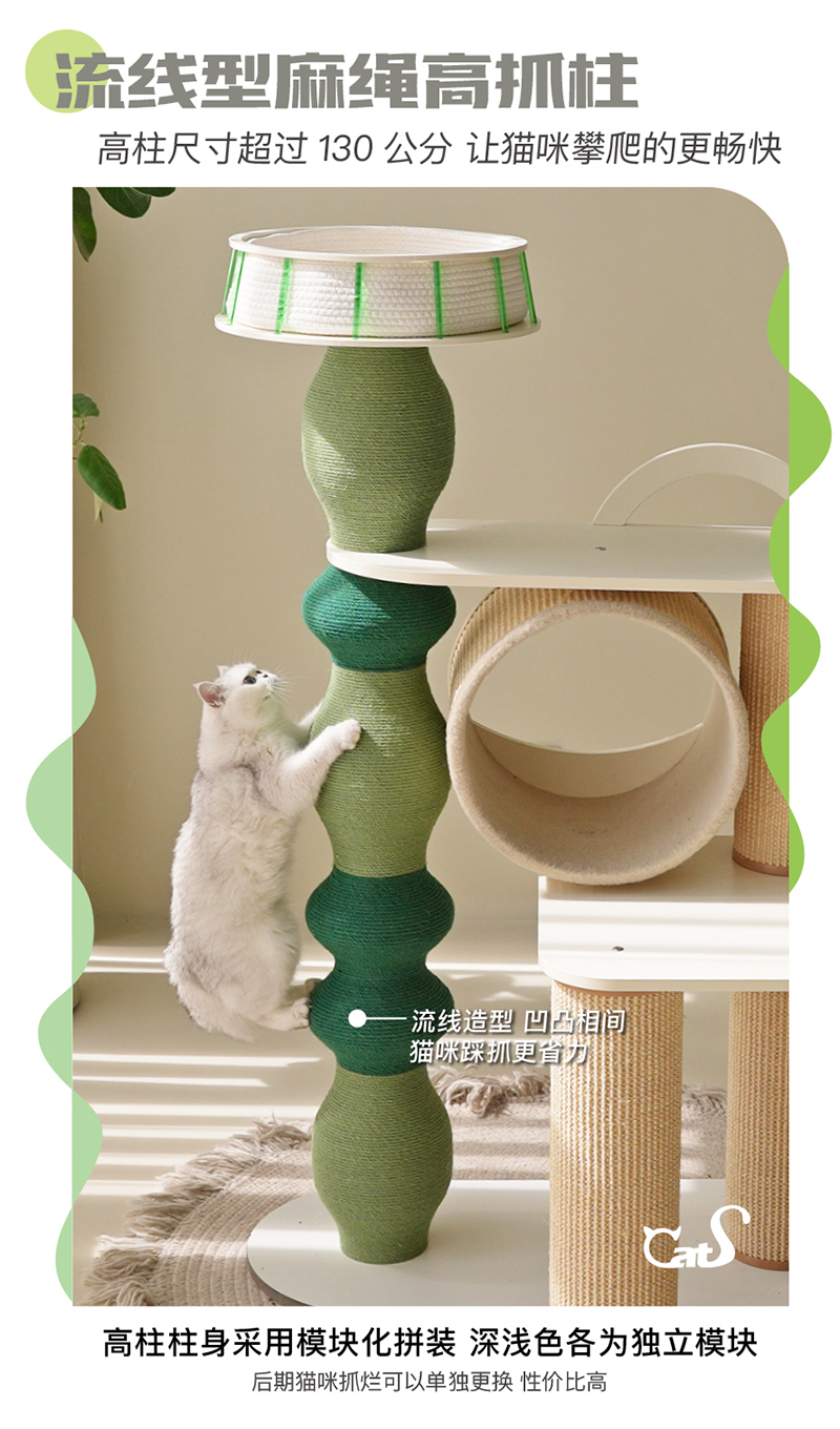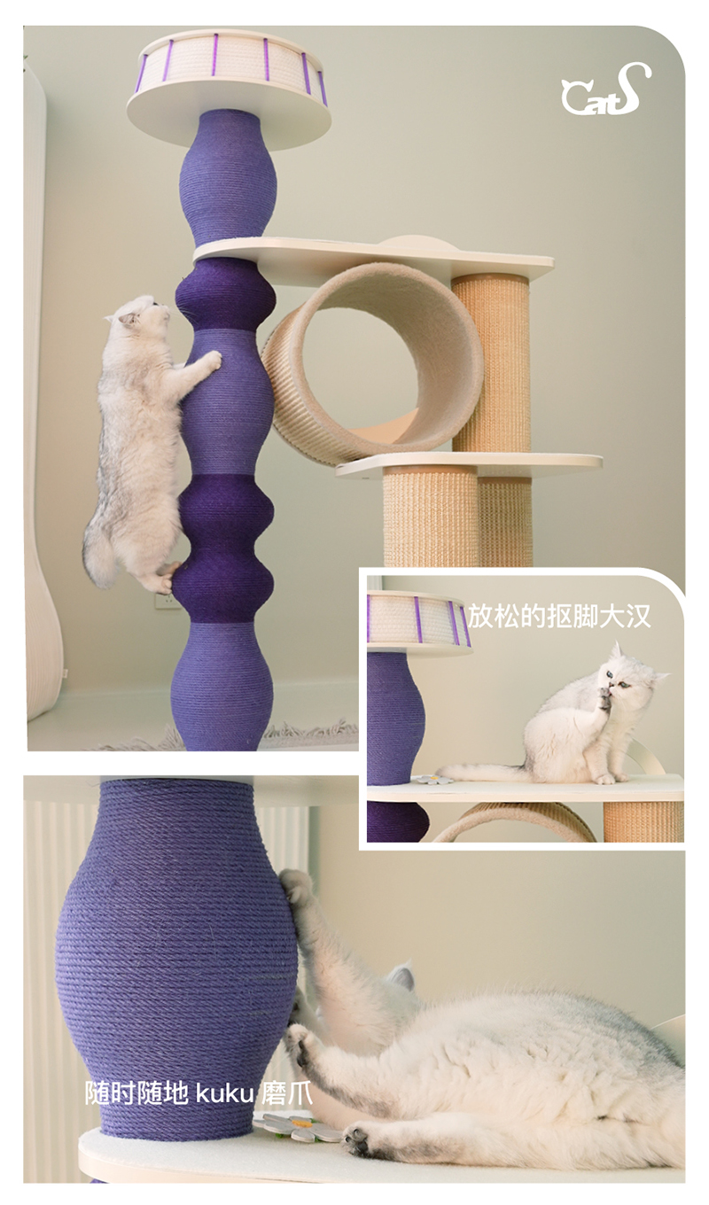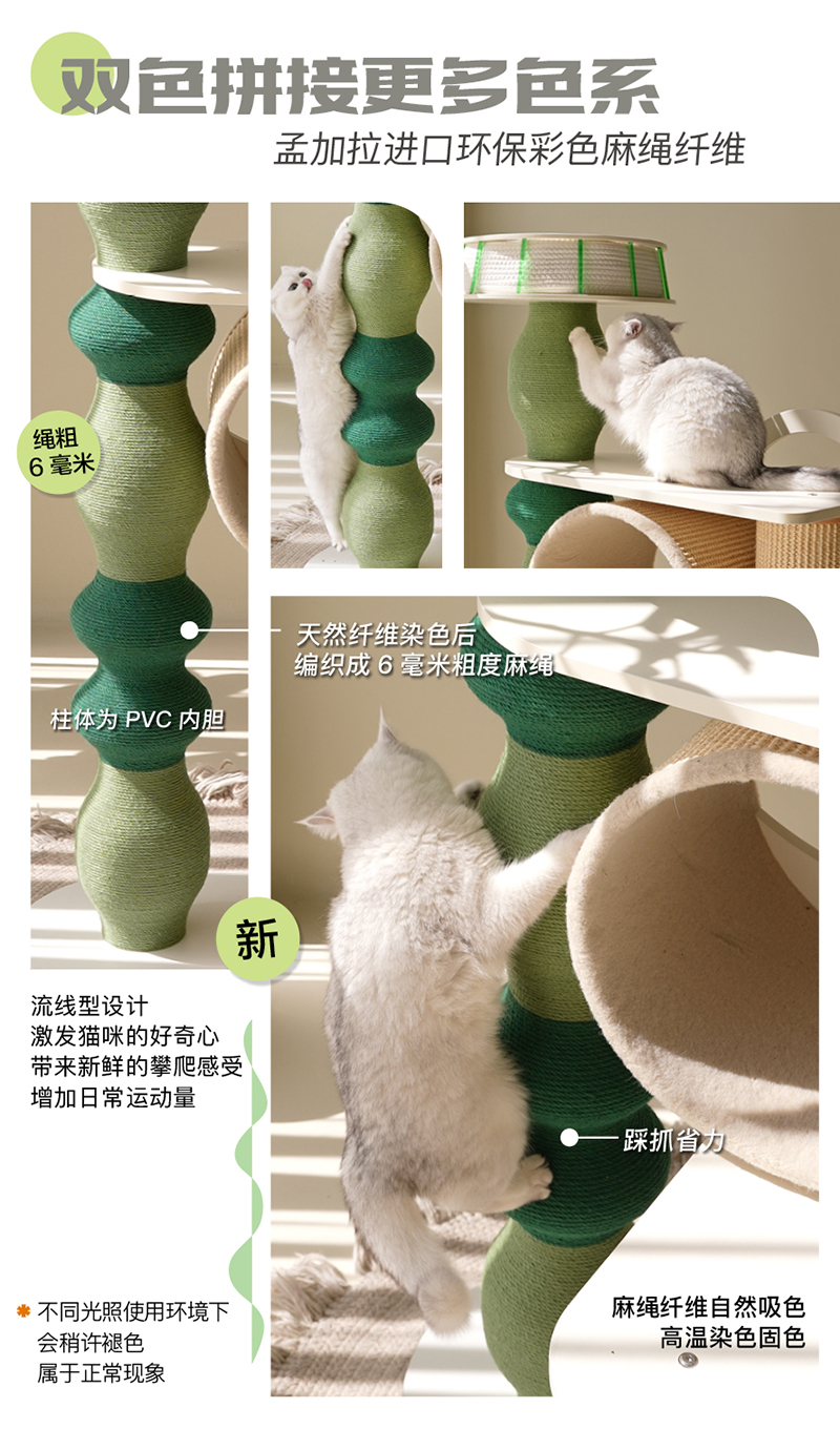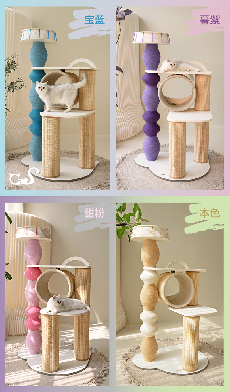 栖系列 超大型实木猫爬架猫抓柱猫钻桶彩色麻绳款