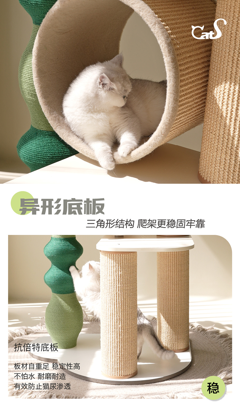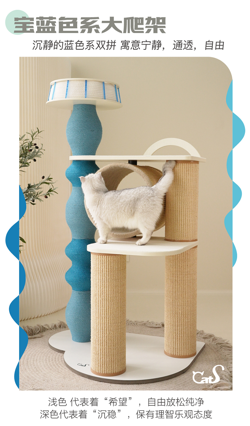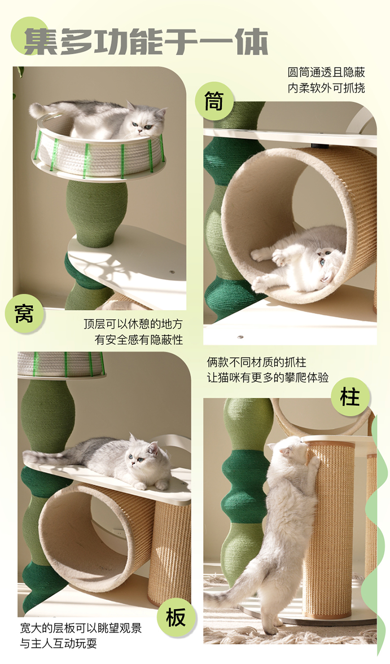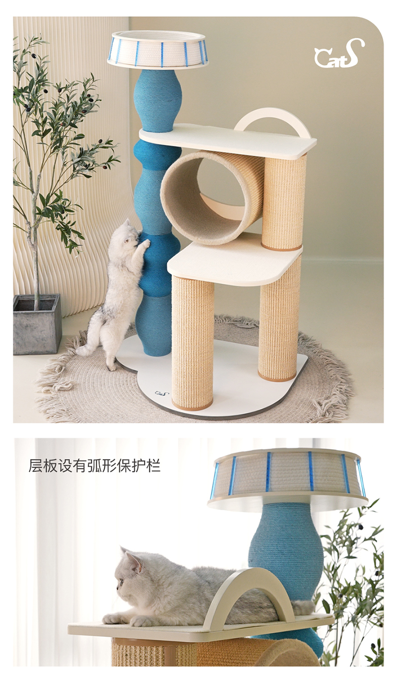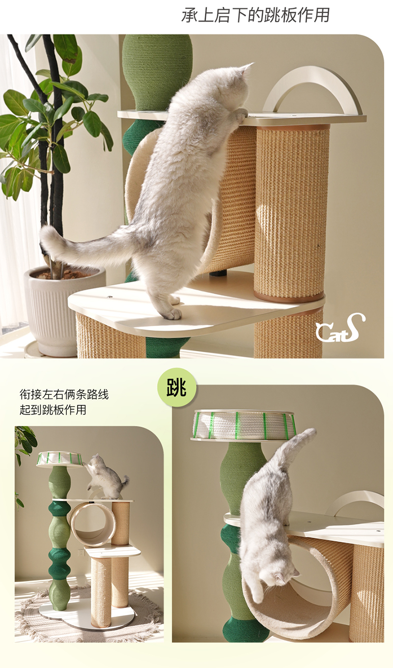 栖系列 超大型实木猫爬架猫抓柱猫钻桶彩色麻绳款