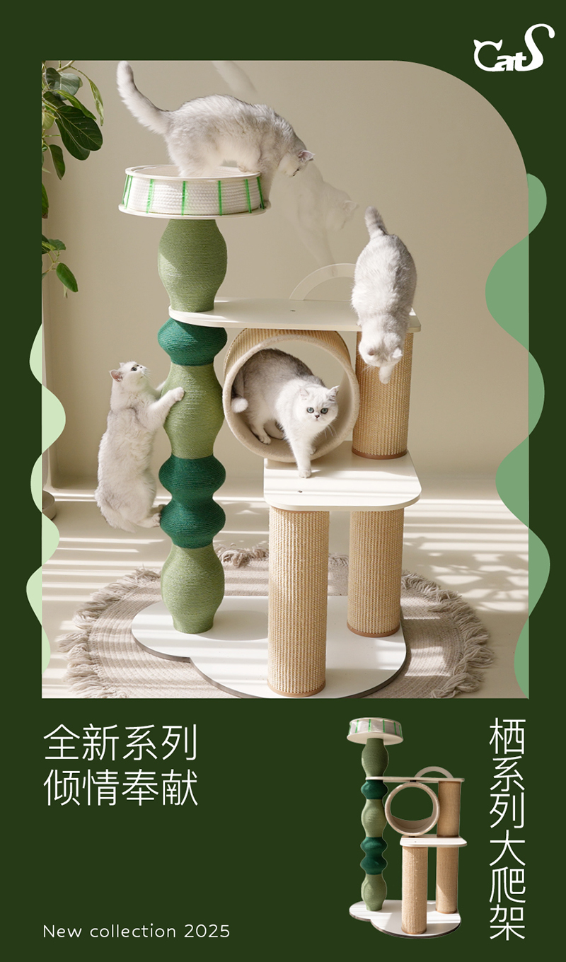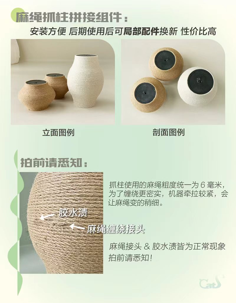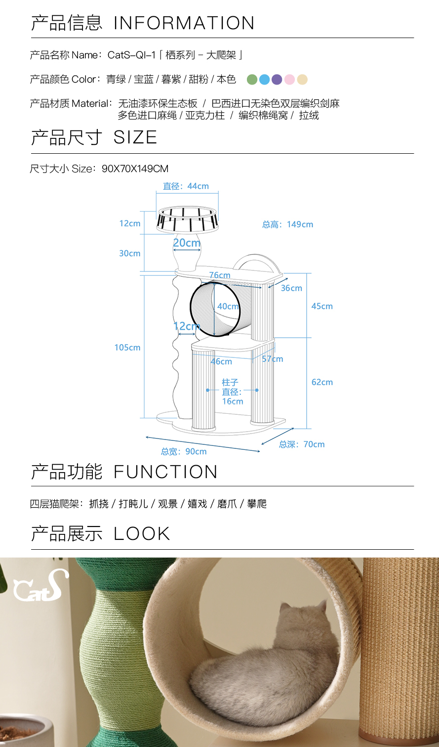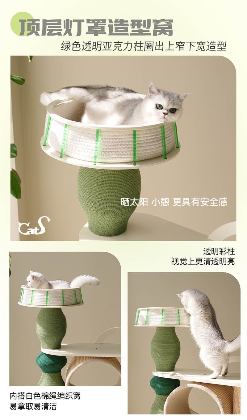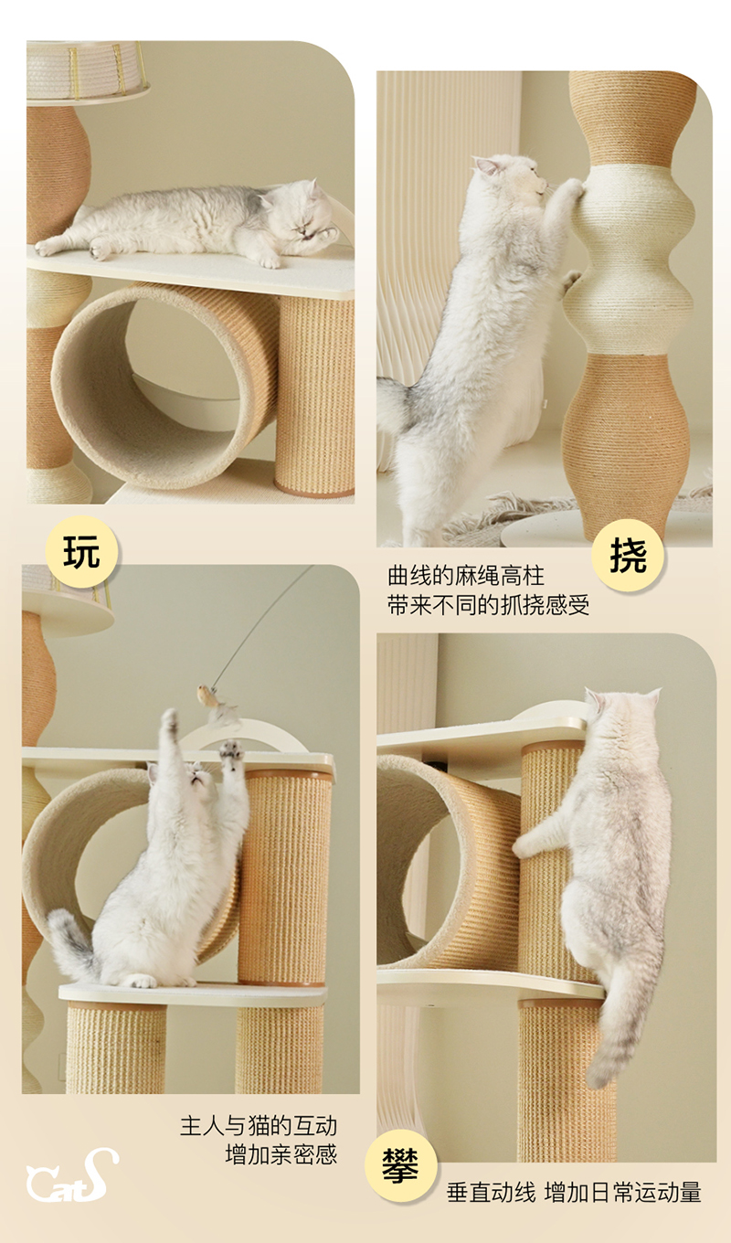栖系列 超大型实木猫爬架猫抓柱猫钻桶彩色麻绳款