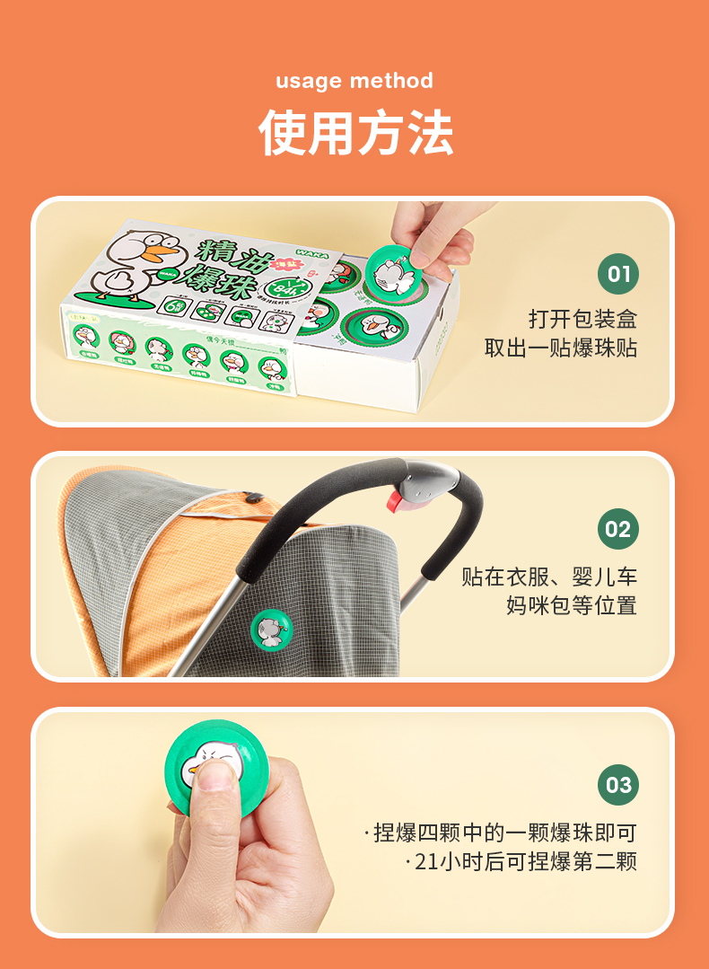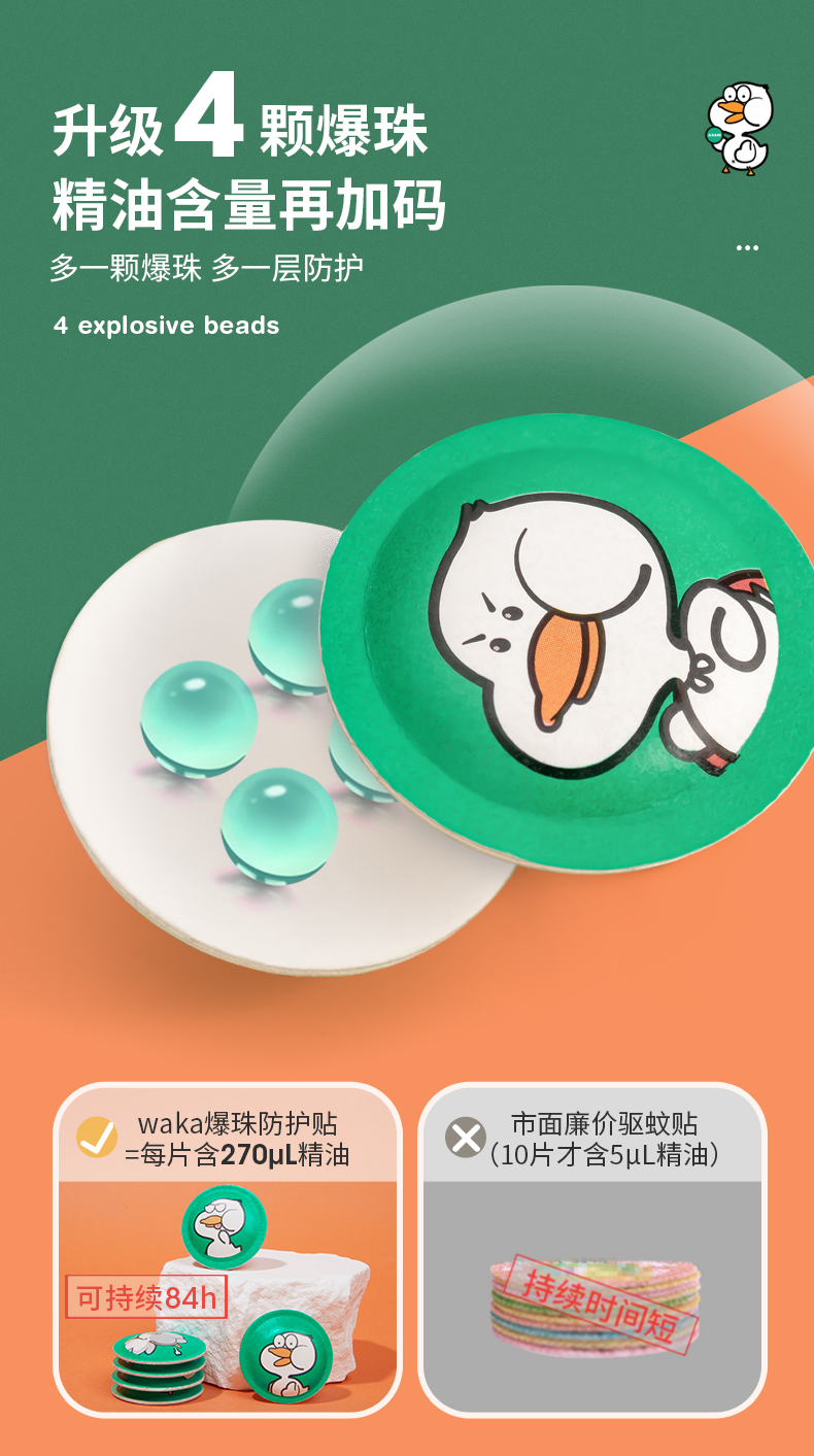 一贴用四天!WAKA儿童户外随身精油爆珠贴 防蚊虫神器