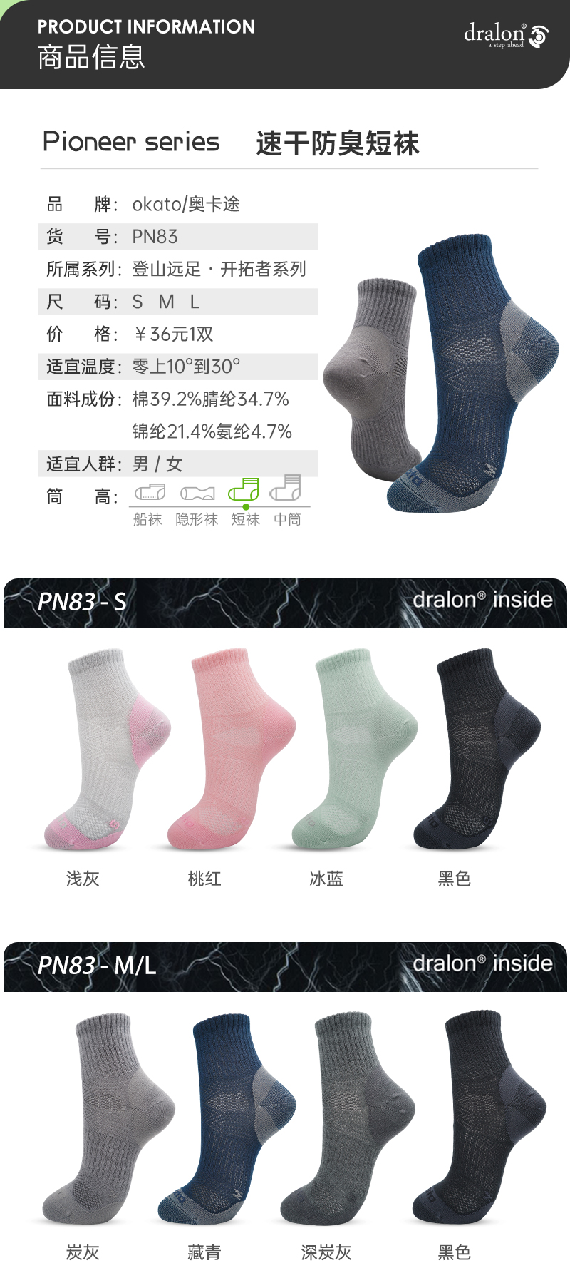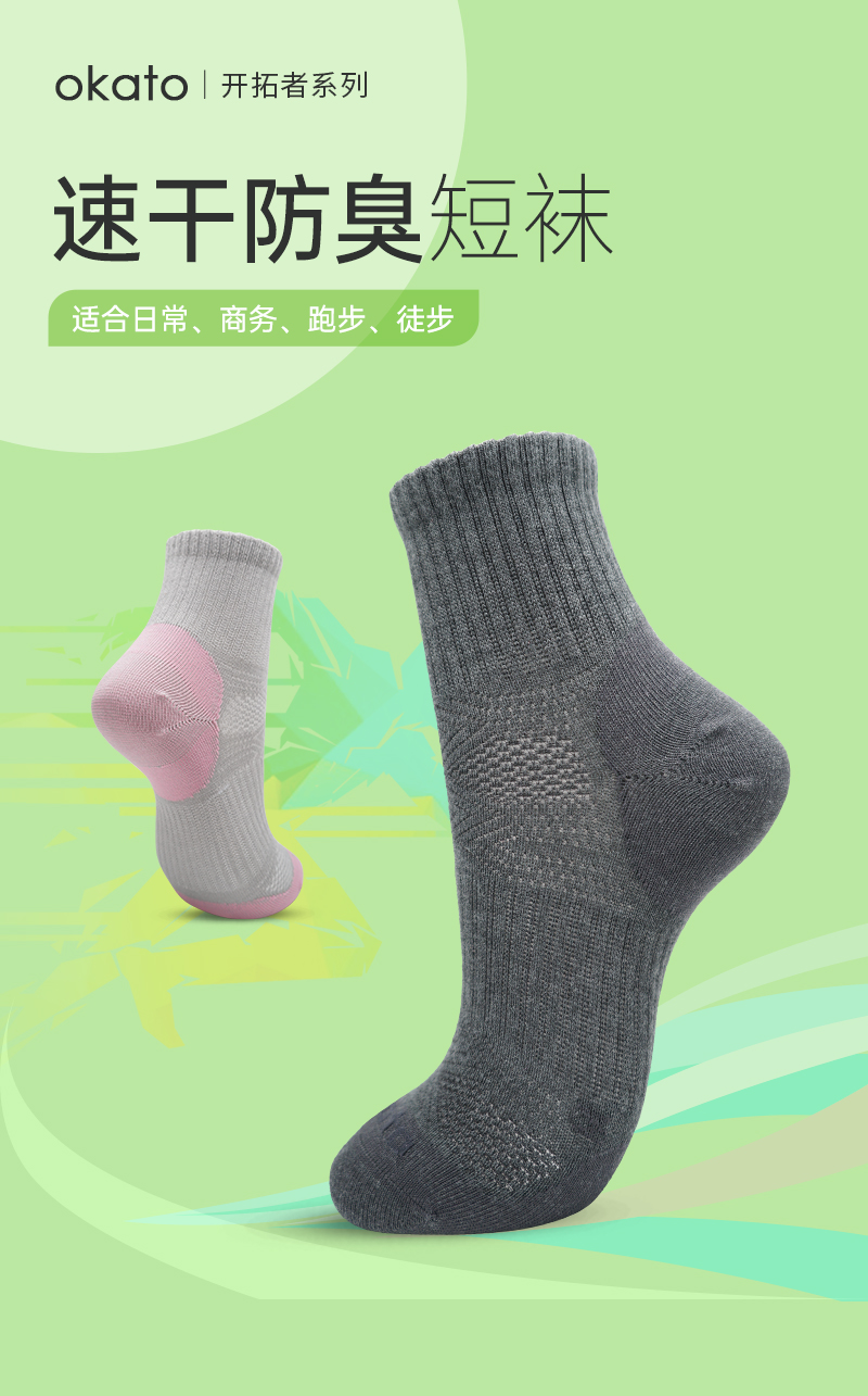 【59秒杀/4双(3个月穿坏包换)】okato开拓者春夏新品 补强款速干防臭 徒步袜户外袜PN83