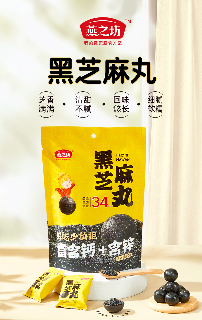 燕之坊 黑芝麻丸 即食手工糕点 休闲零食 高钙高蛋白 90g