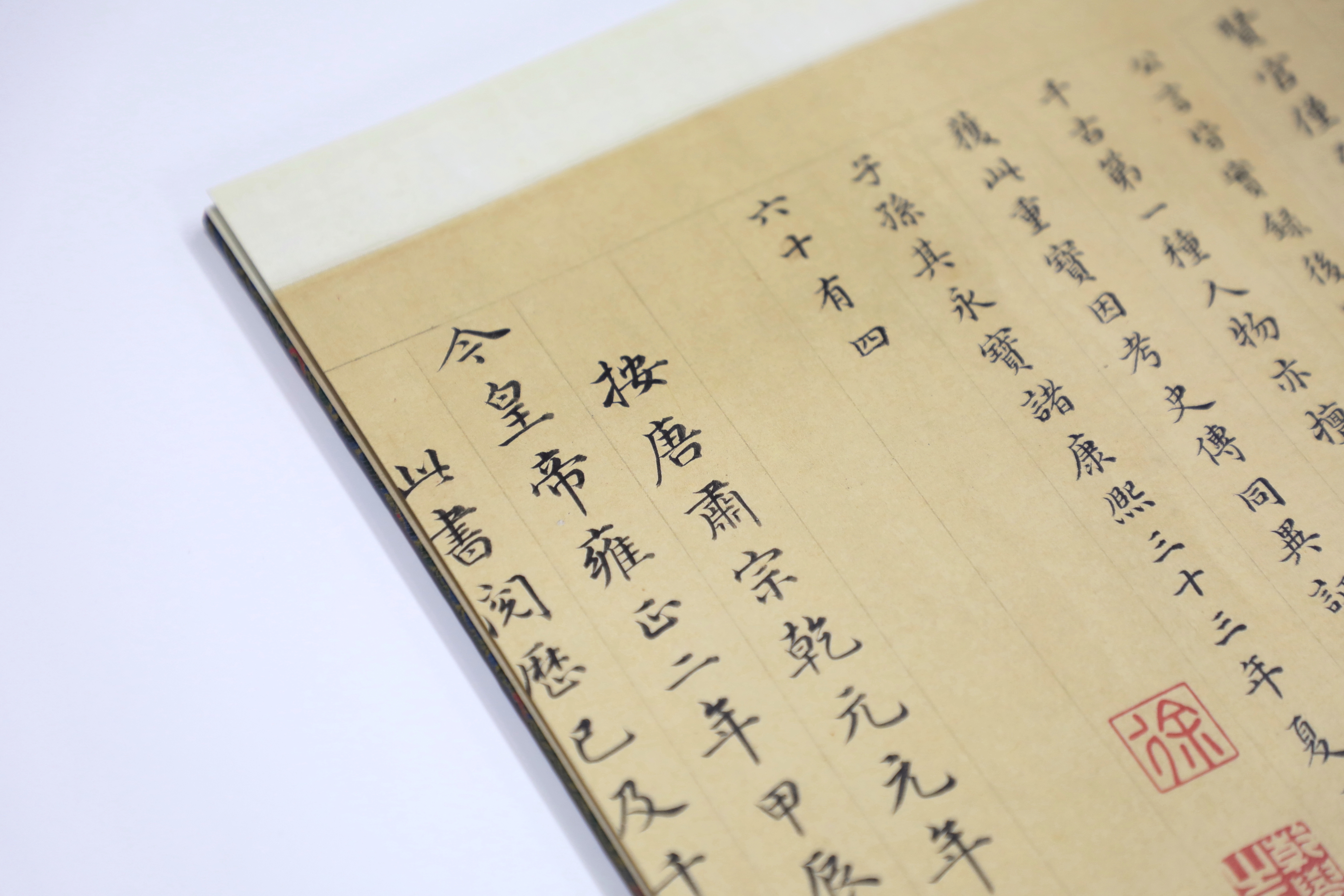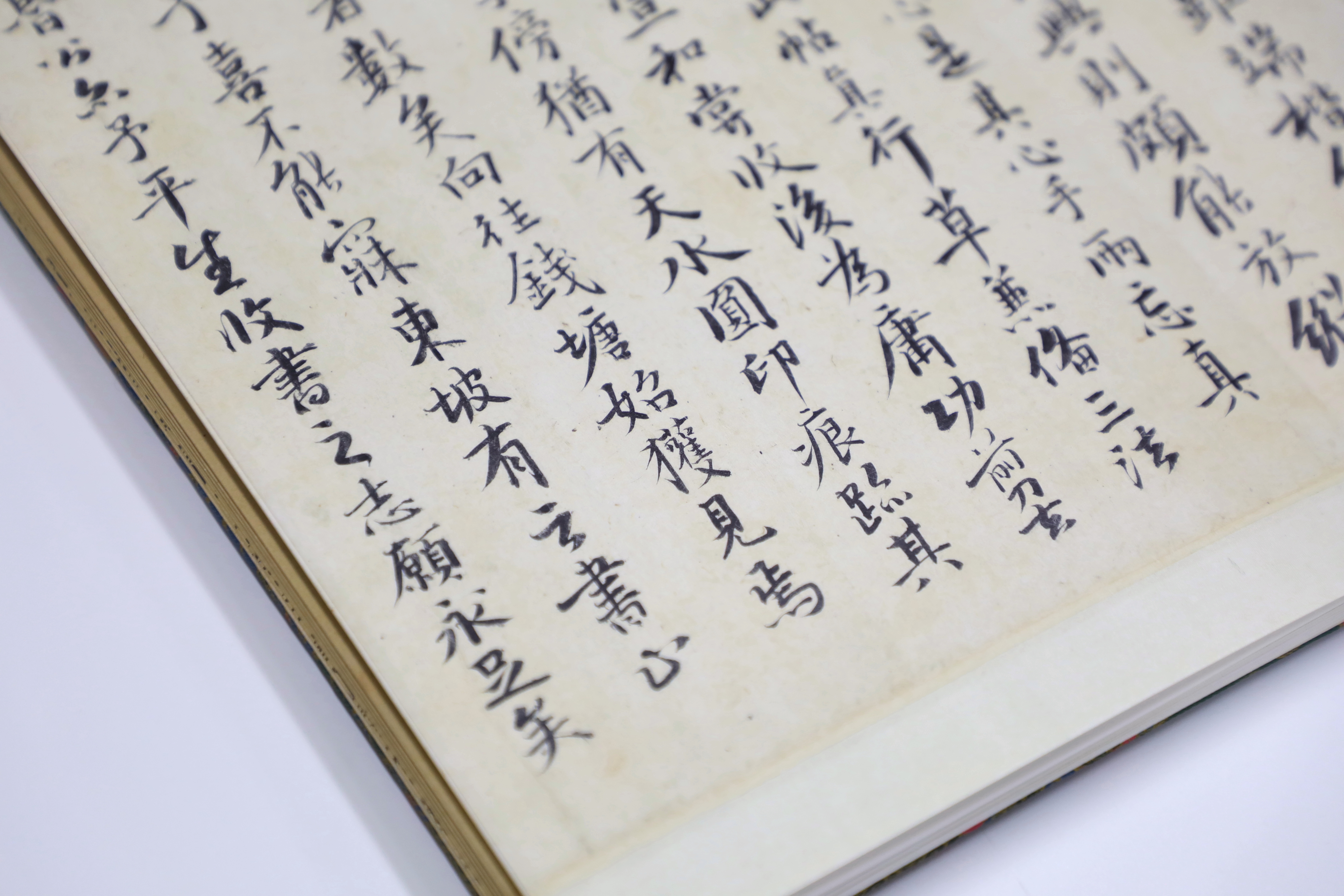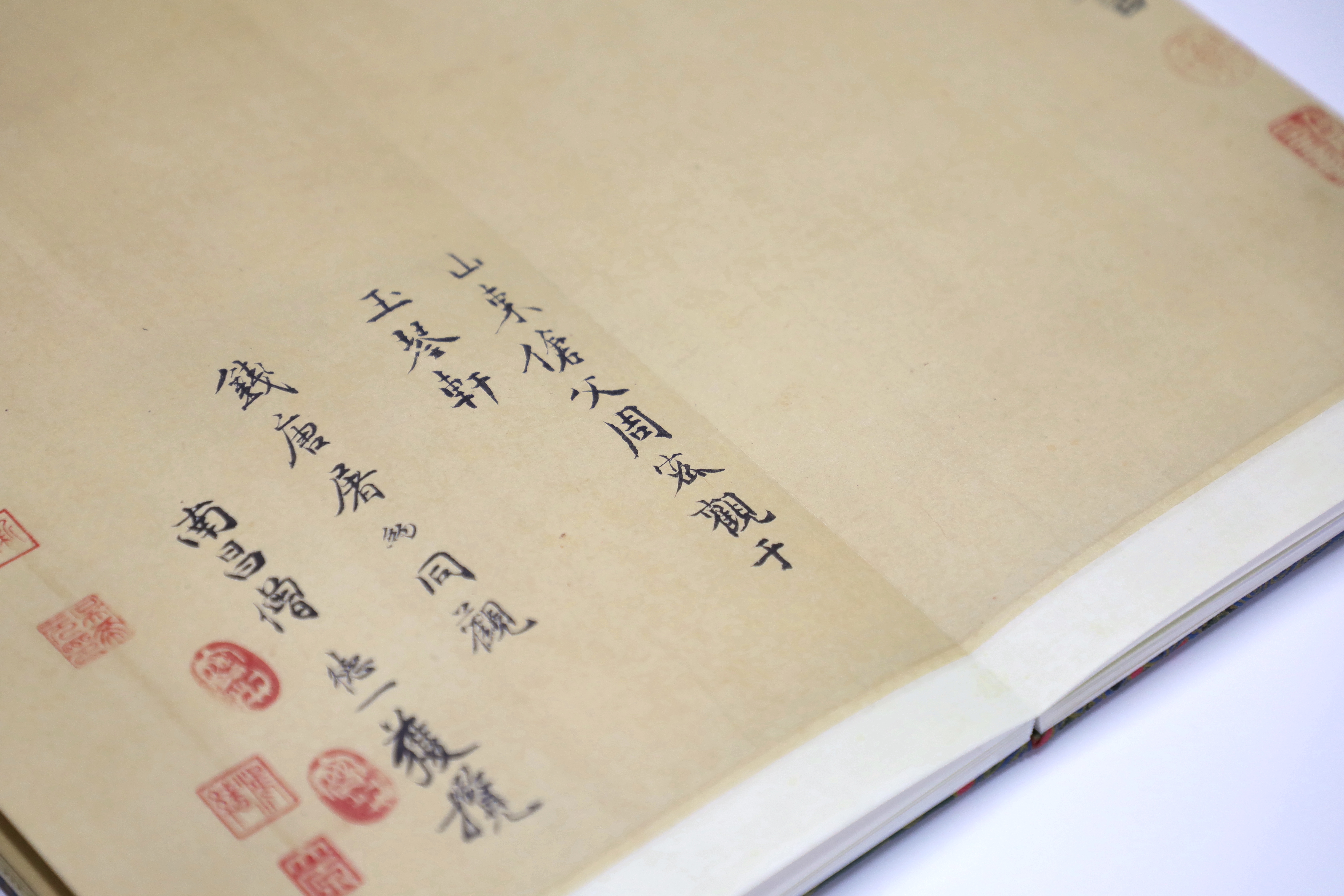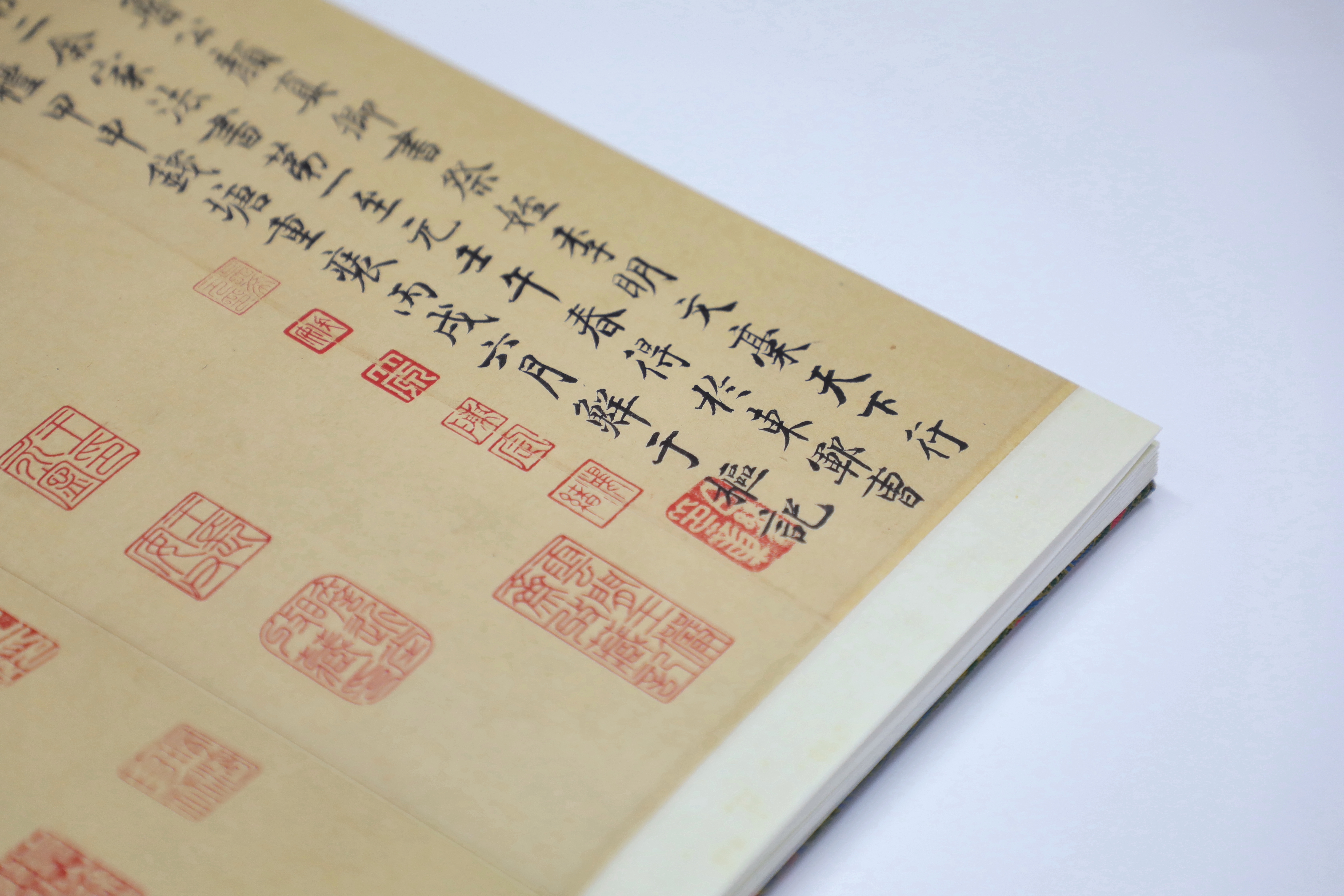 手卷因为作品长度的缘故,改为经折装不可避免的会出现折到字的情况,制作团队反复测算排版,最终确定了成书方案,最少折字,最佳观看体验。此外,对书口进行特别处理后,经折装的左侧书口处油墨不会蹭掉脱落,全本时展时新,没有后顾之忧。