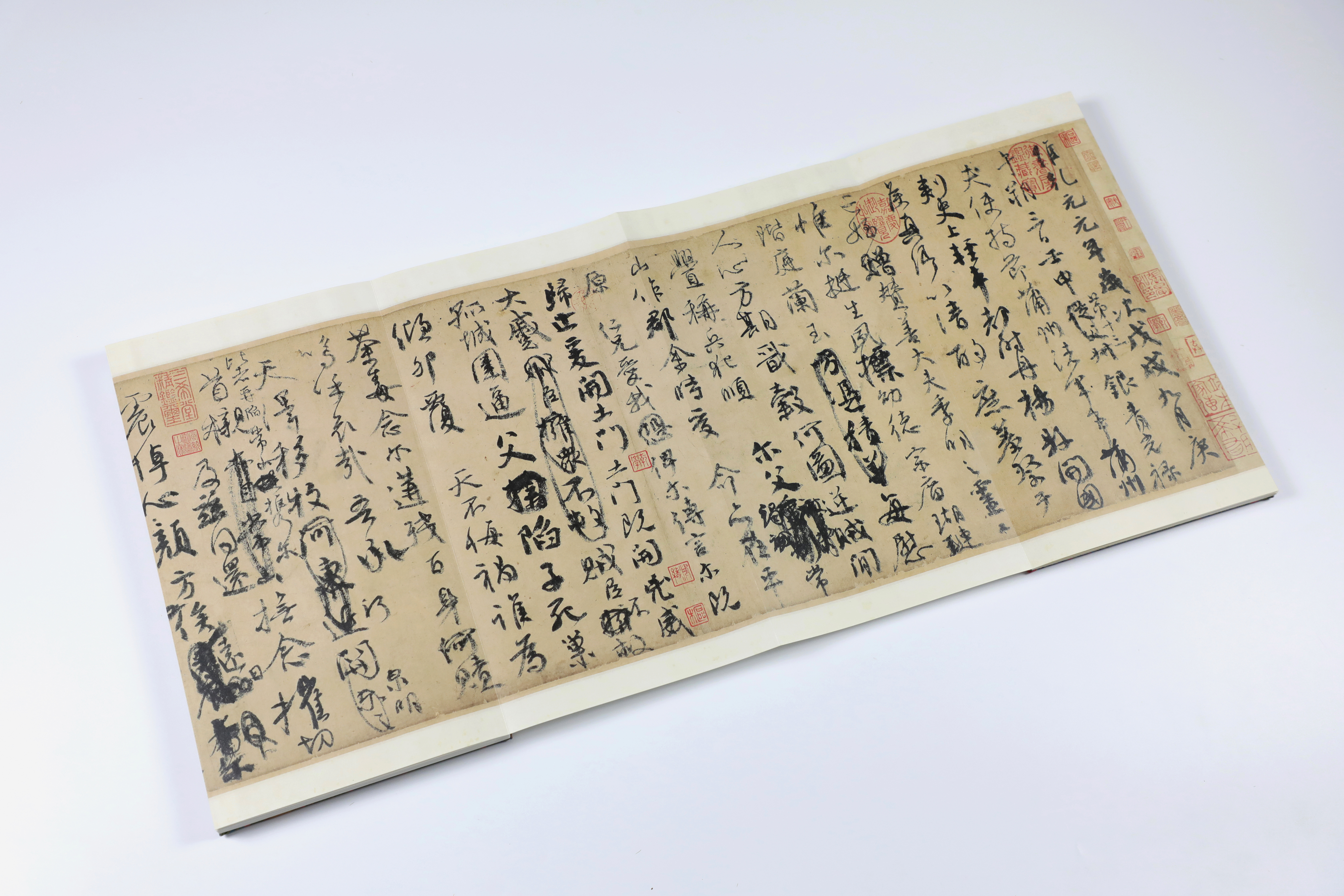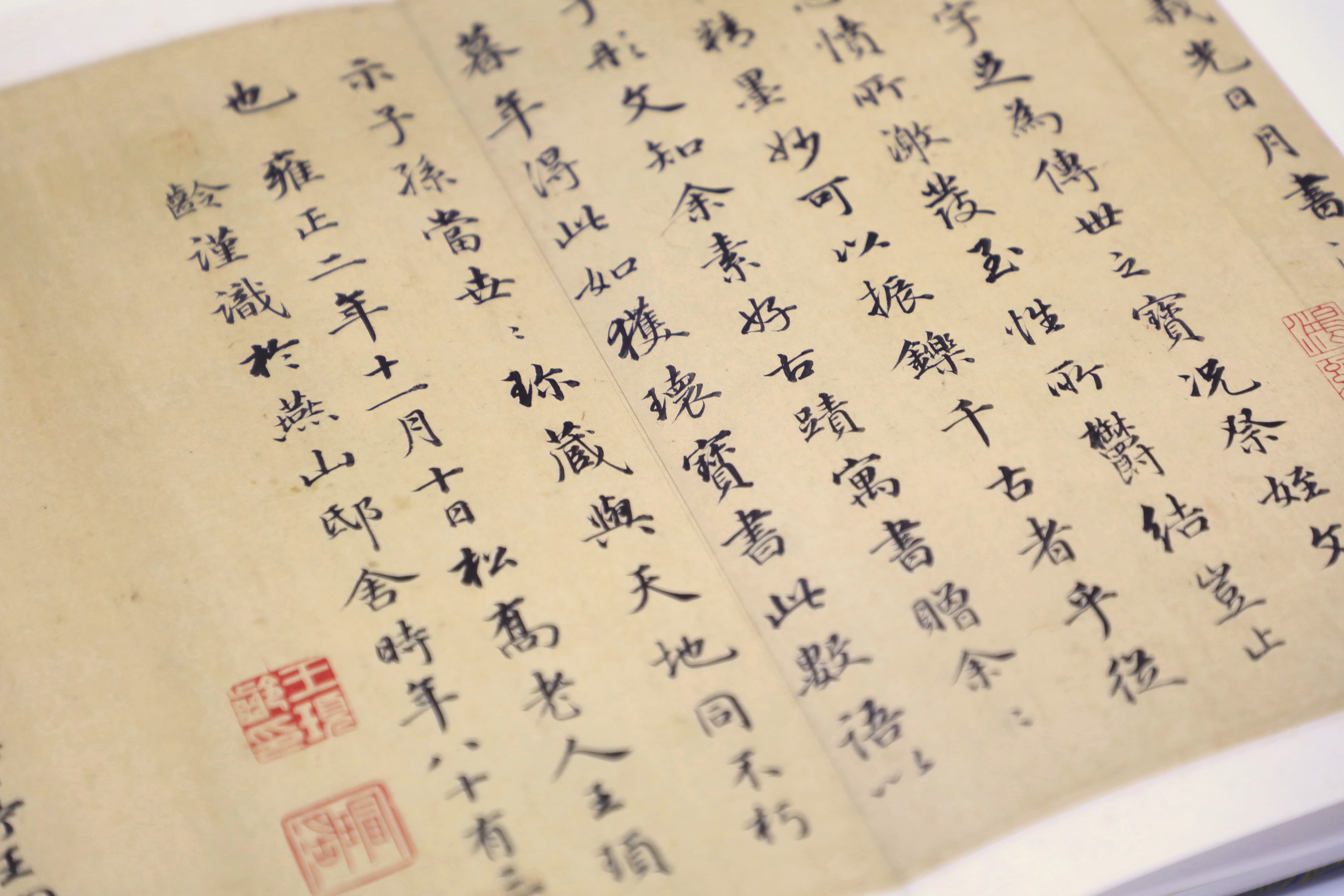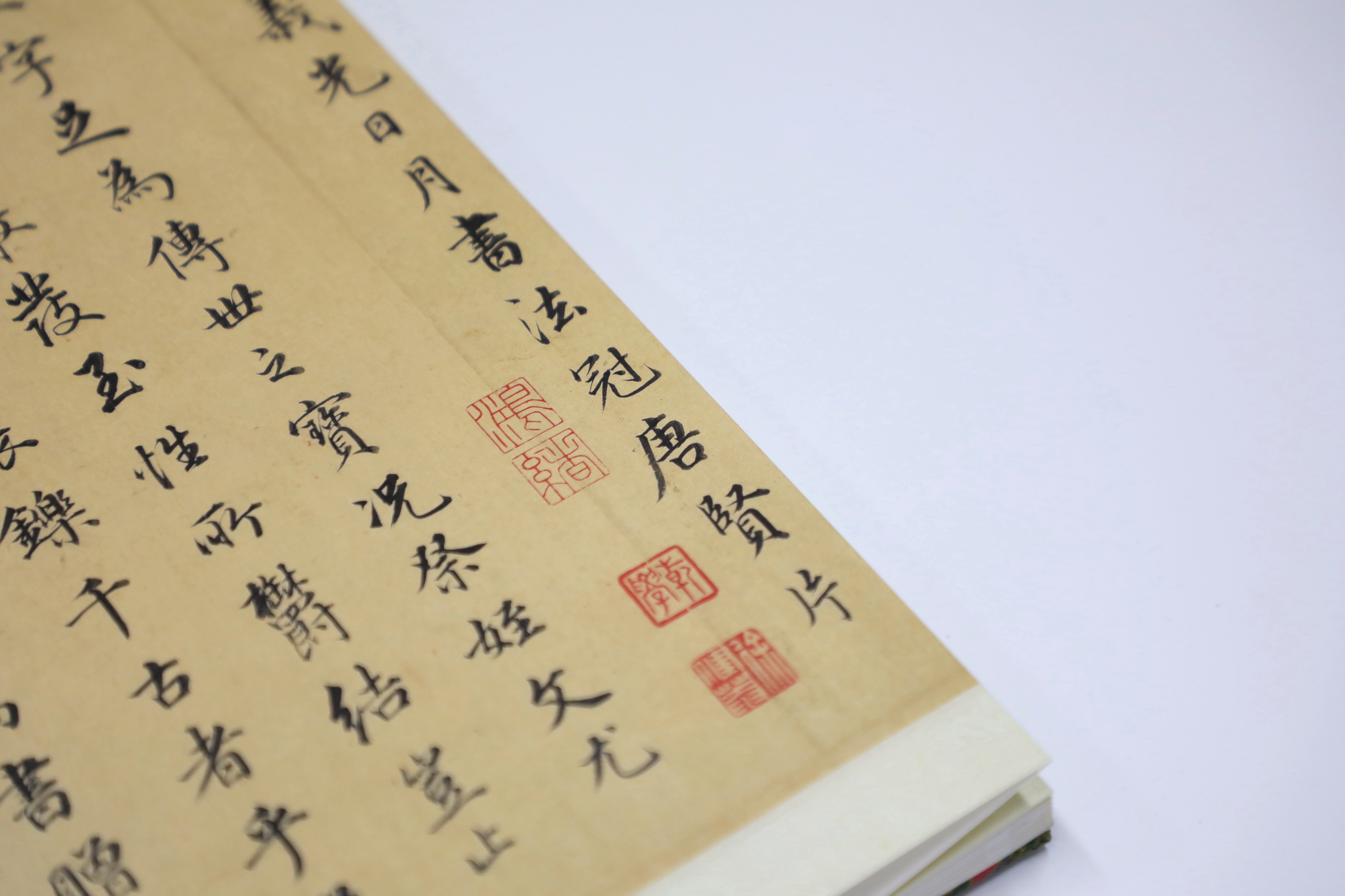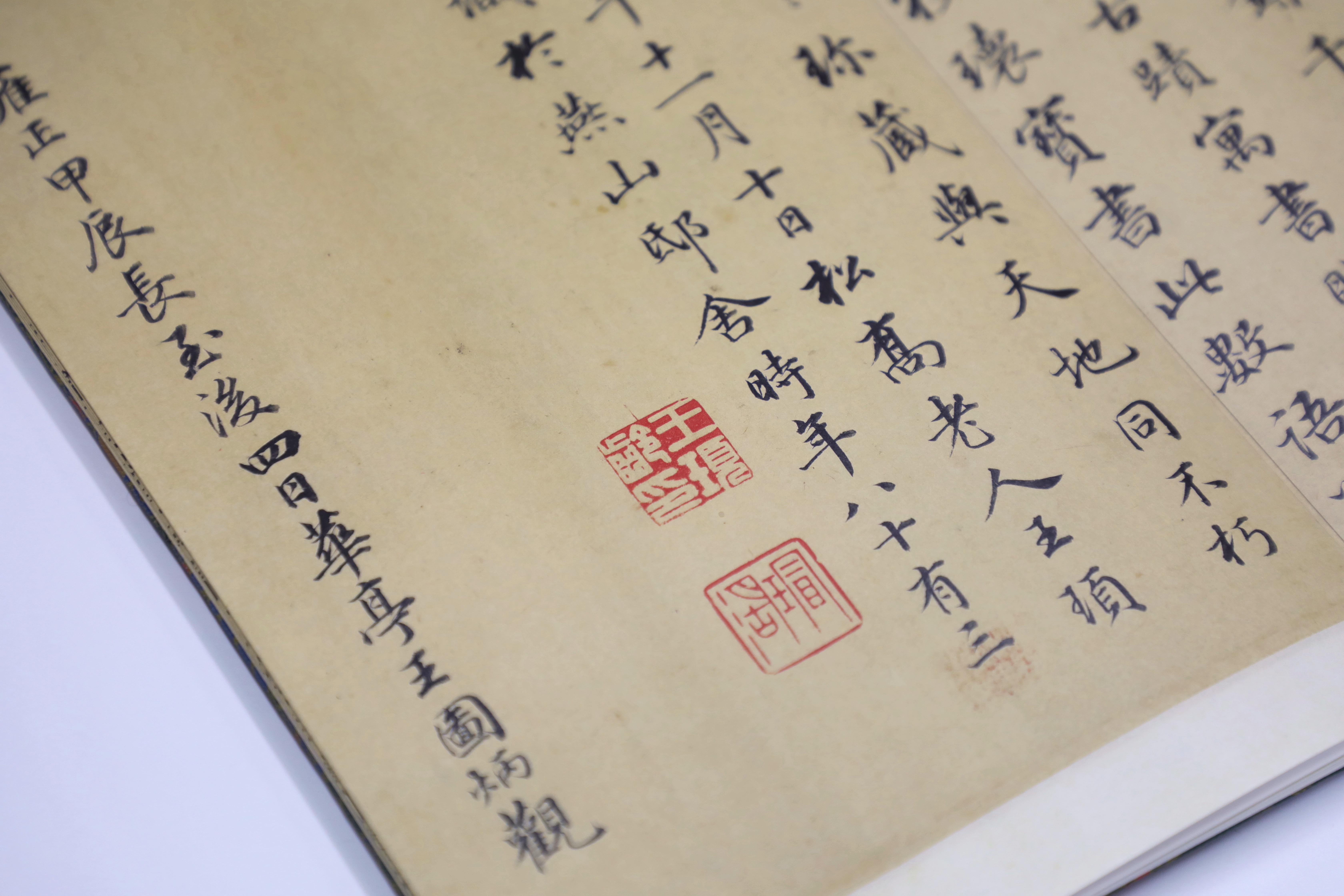 手卷因为作品长度的缘故,改为经折装不可避免的会出现折到字的情况,制作团队反复测算排版,最终确定了成书方案,最少折字,最佳观看体验。此外,对书口进行特别处理后,经折装的左侧书口处油墨不会蹭掉脱落,全本时展时新,没有后顾之忧。
