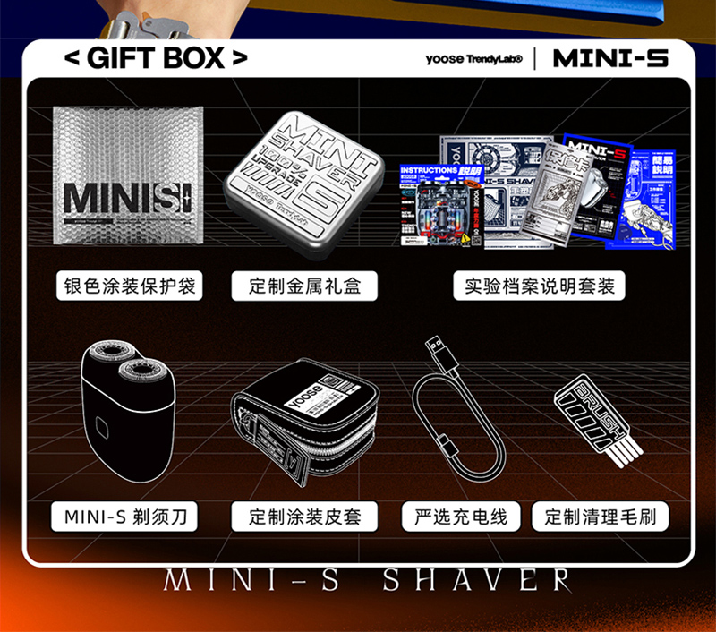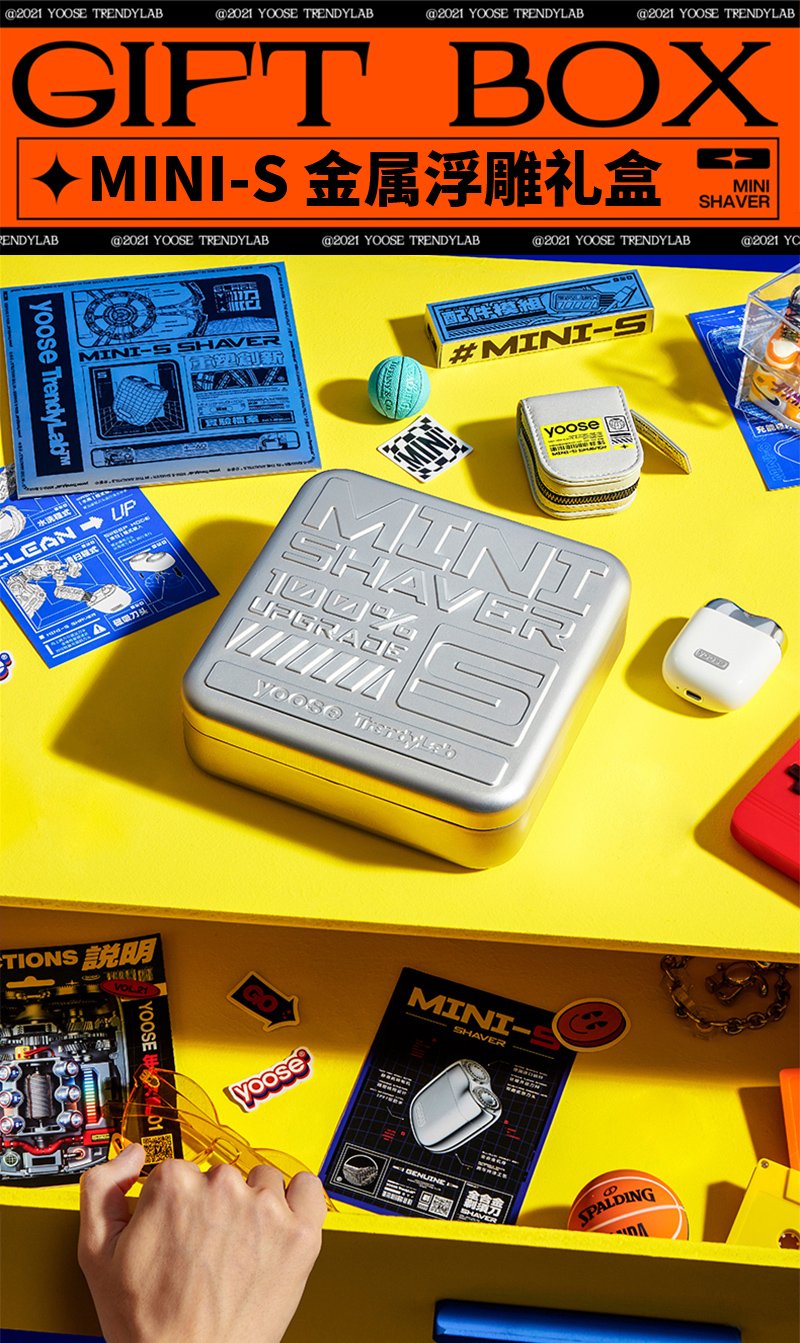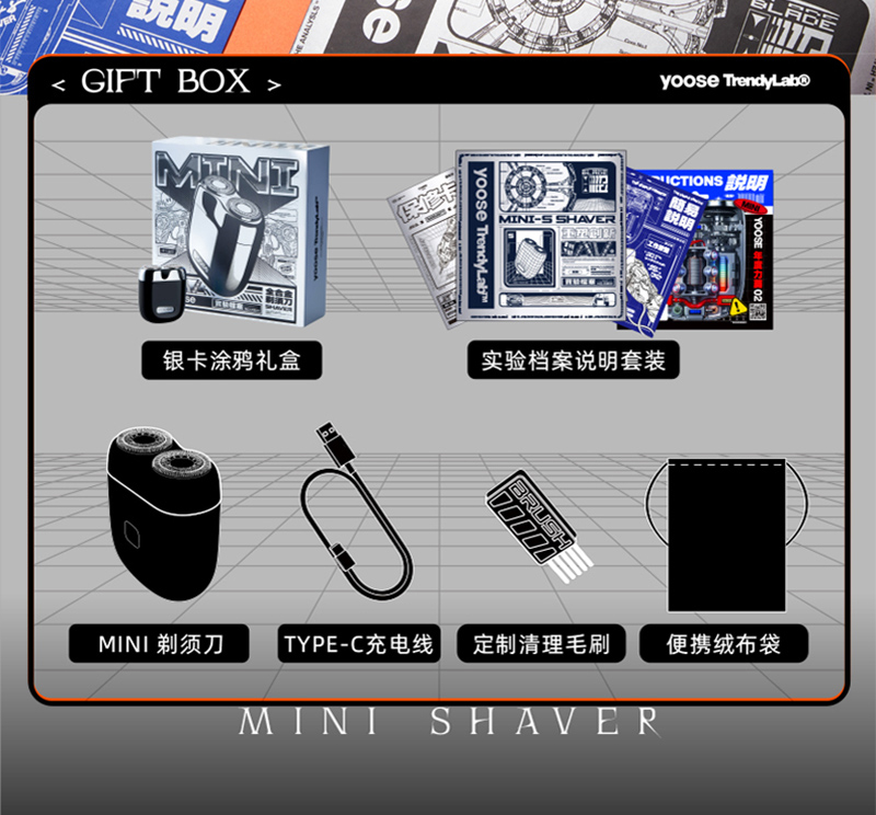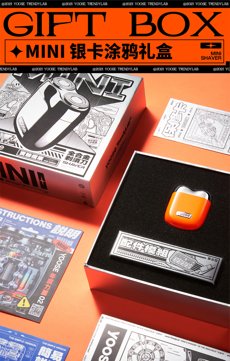【yoose有色电动剃须刀】MINI-S&MINI强劲性能|进口钢材|超长续航|金属浮雕礼盒||银卡涂鸦礼盒