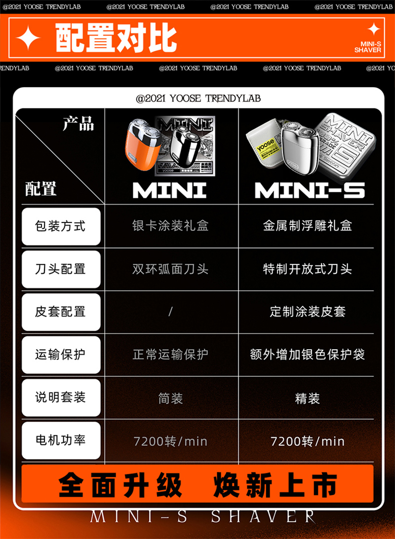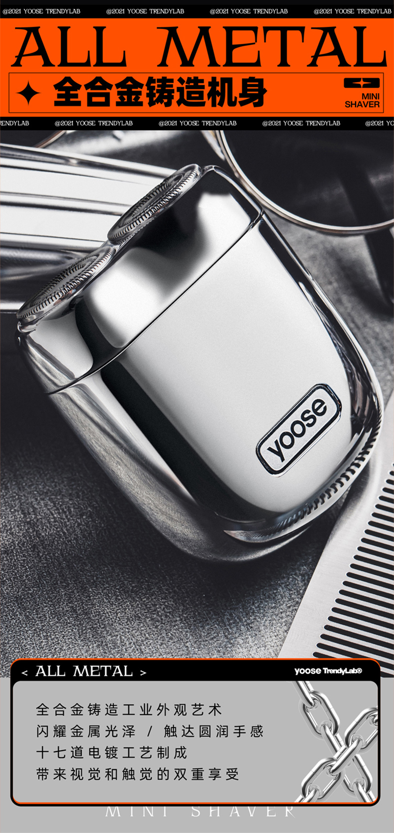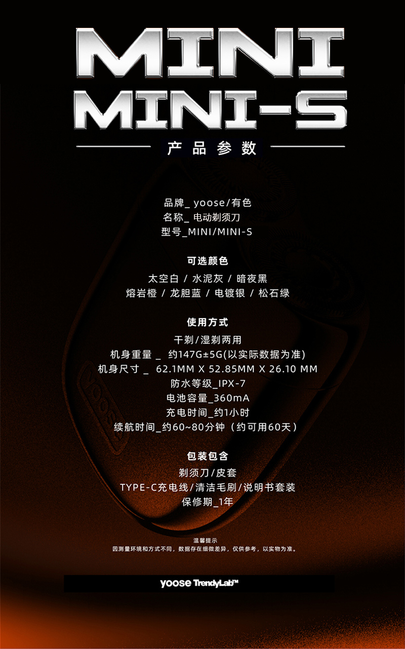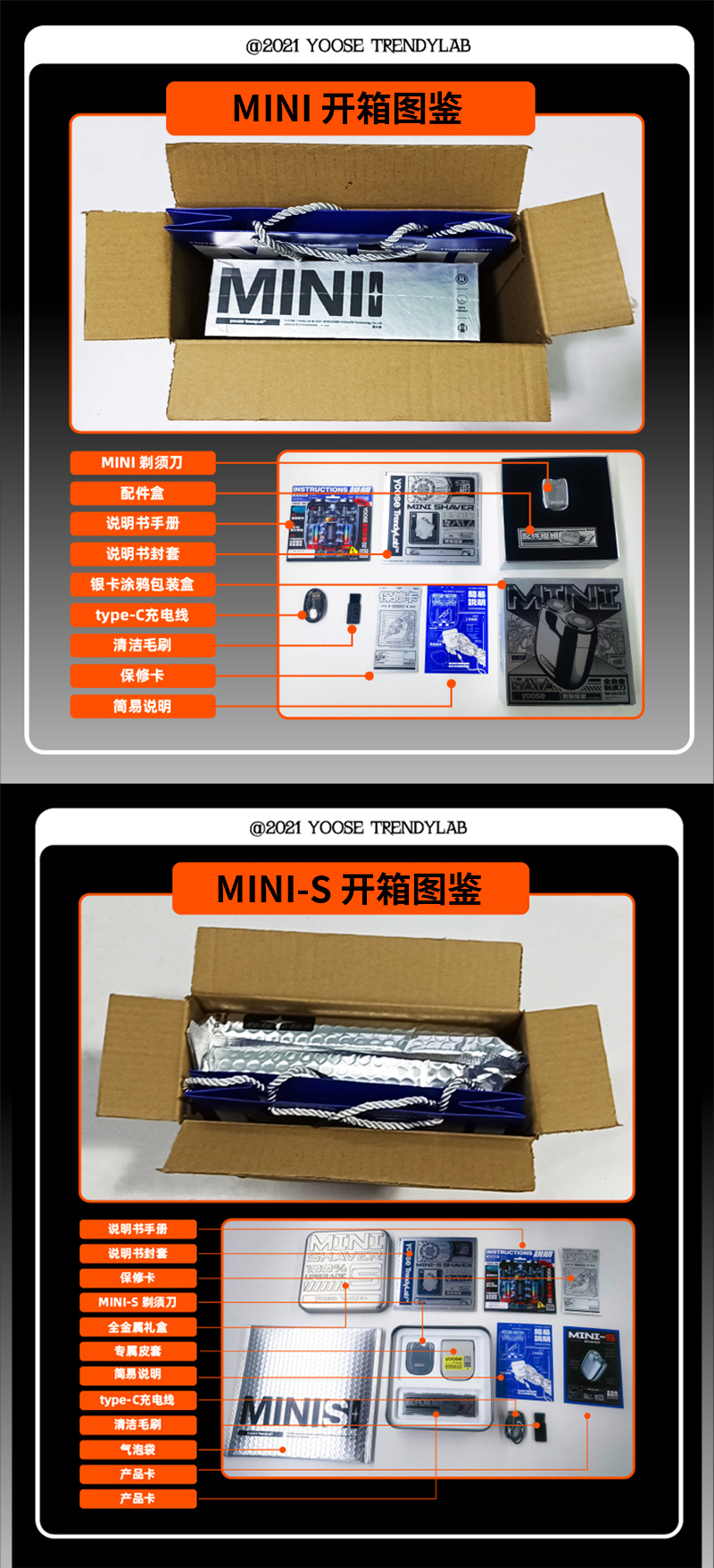 【yoose有色电动剃须刀】MINI-S&MINI强劲性能|进口钢材|超长续航|金属浮雕礼盒||银卡涂鸦礼盒